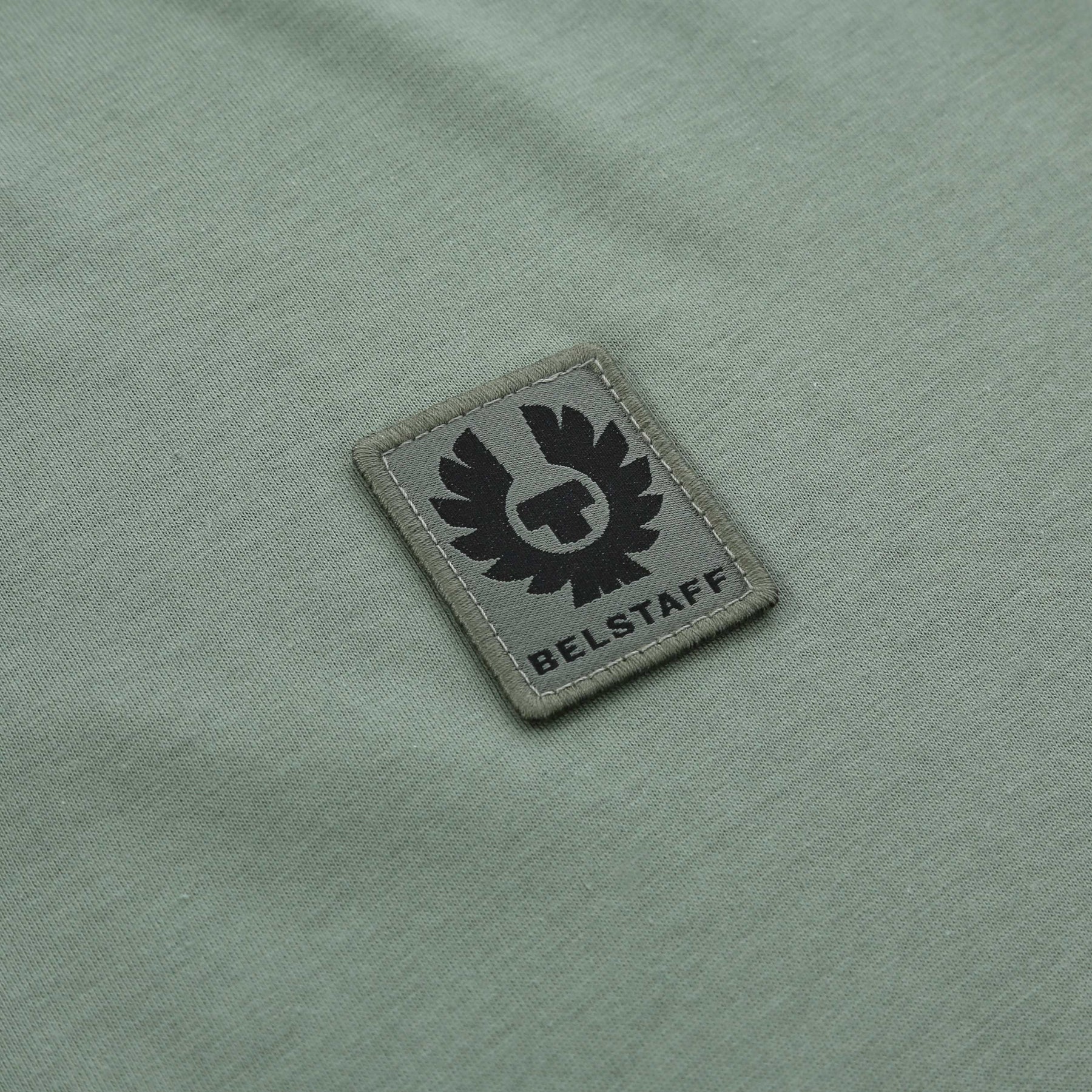 Belstaff Long Sleeve T Shirt in Sage Green. A classic crew neck, long sleeve t-shirt by Belstaff. A plain design t-shirt perfect for everyday wear. Featuring the iconic Belstaff logo on the chest.