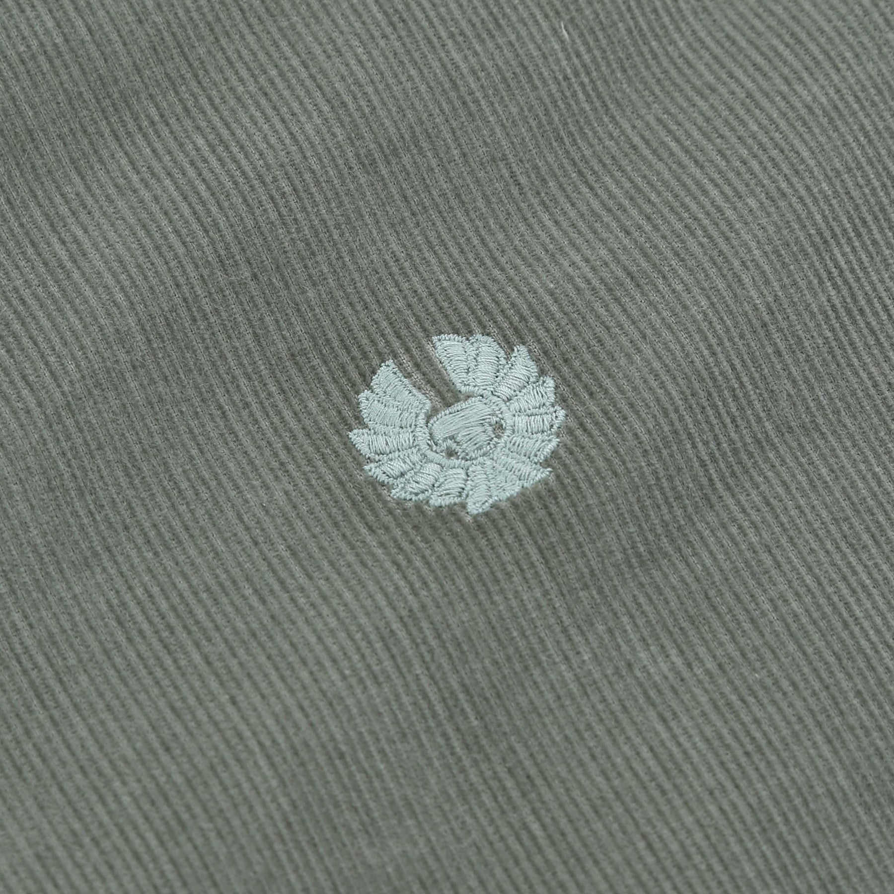 Belstaff Street Shirt in Sage Green. A regular fit shirt by Belstaff. Crafted from a fine corduroy, this shirt features a full button fastening placket. This corduroy shirt has a button down collar. Finished with an embroidered Belstaff phoenix logo to the chest. Perfect shirt to layer up with a Belstaff t-shirt.