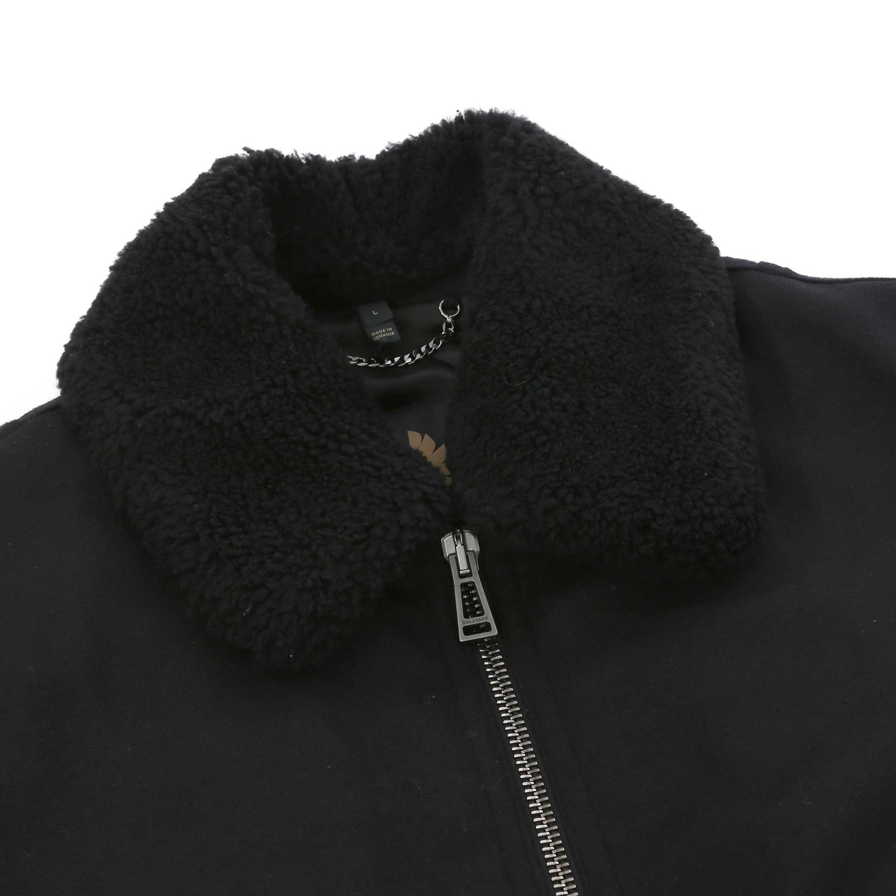 The Belstaff Welder Jacket in Black is the epitome of sophisticated outerwear, merging style and practicality seamlessly. Designed for the modern individual, this jacket is crafted from a luxurious Italian wool-blend fabric, ensuring you stay warm and comfortable during the colder months. Its classic silhouette is enhanced with a detachable Merino shearling collar, allowing for versatile styling options that cater to various occasions.