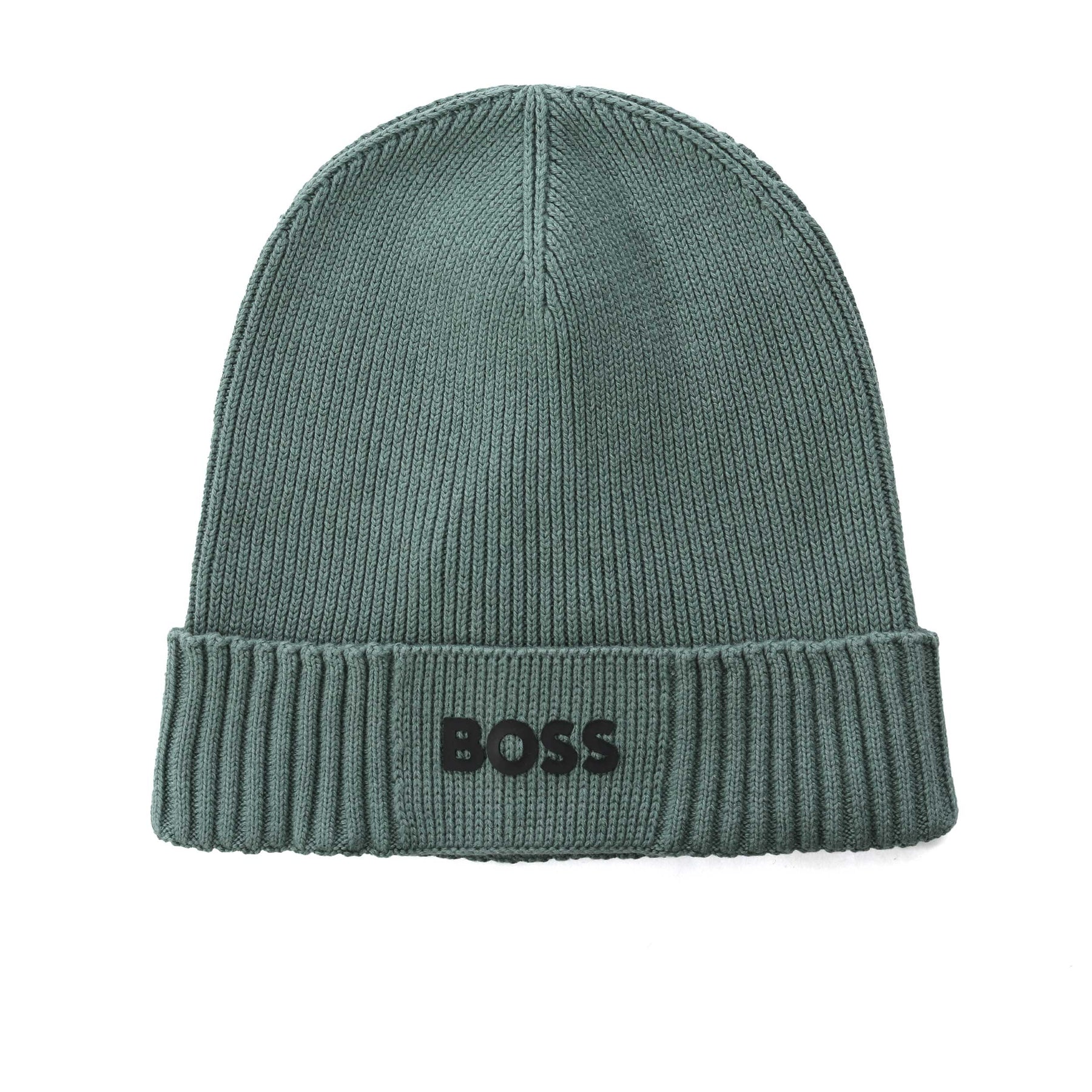 BOSS Asic Beanie X in Open Green. This BOSS beanie hat arrives in a wool blend with a classic ribbed design. The turnover features a rubber BOSS logo.