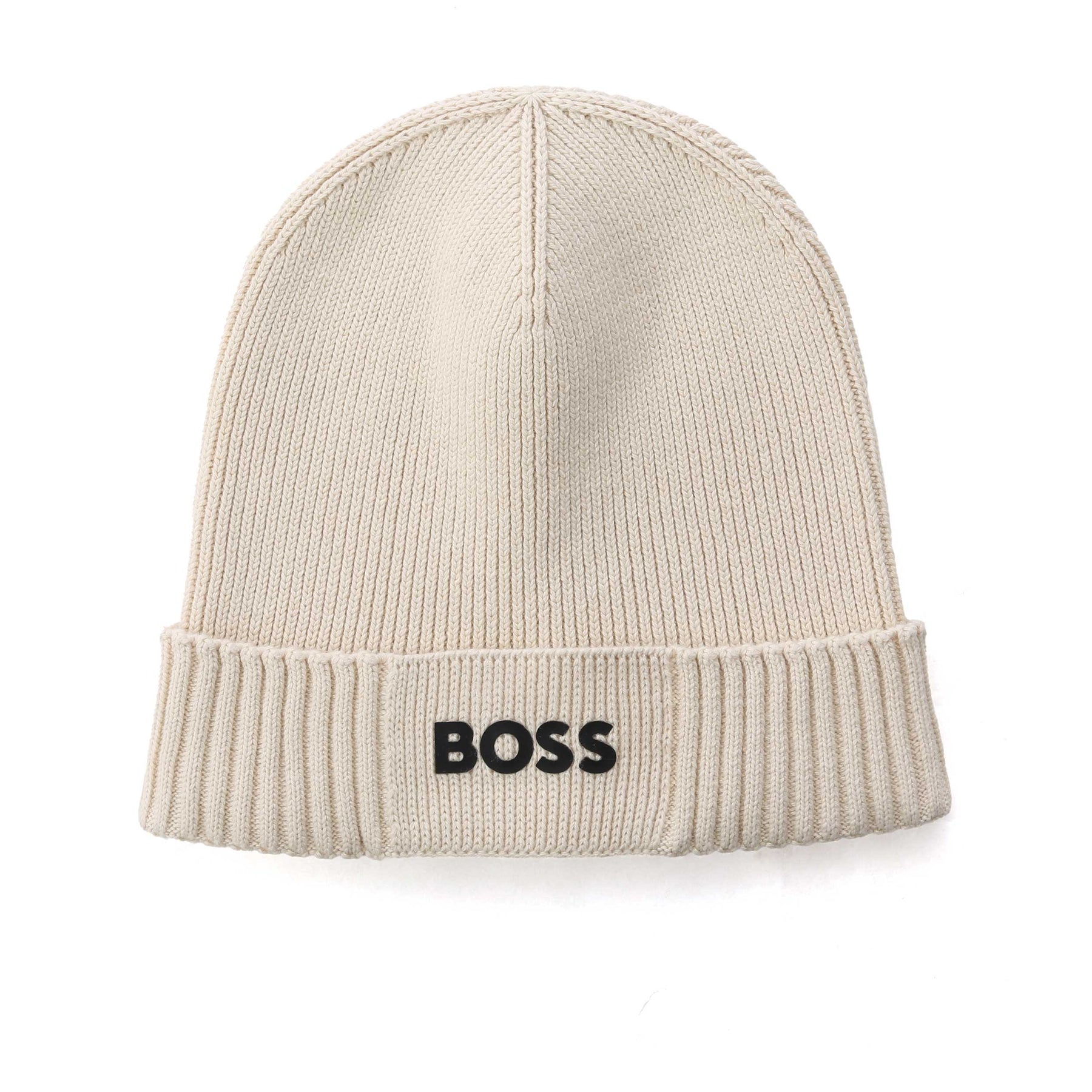 BOSS Asic Beanie X in Open White. This BOSS beanie hat arrives in a wool blend with a classic ribbed design. The turnover features a rubber BOSS logo.
