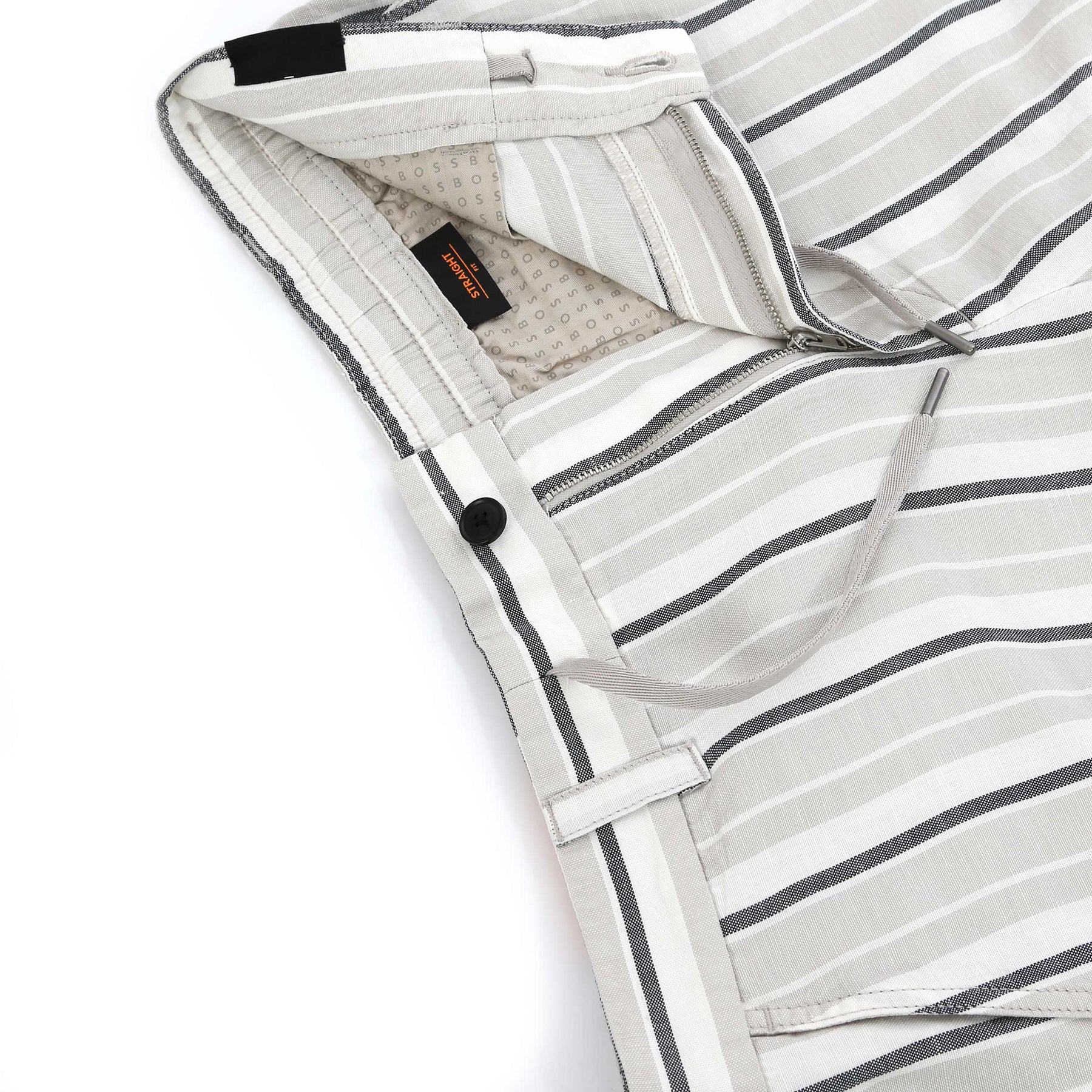 BOSS Chino ST Shorts 2 Short in Open Grey. Chino style st/raight fit short by BOSS. Contrasting stripe design 5 pocket short with 2 slash front pockets. Button and zip fastening fly. Elasticated waistband with drawstring fastening. Constructed from a linen mix. Boss logo tab to the seat of the short.