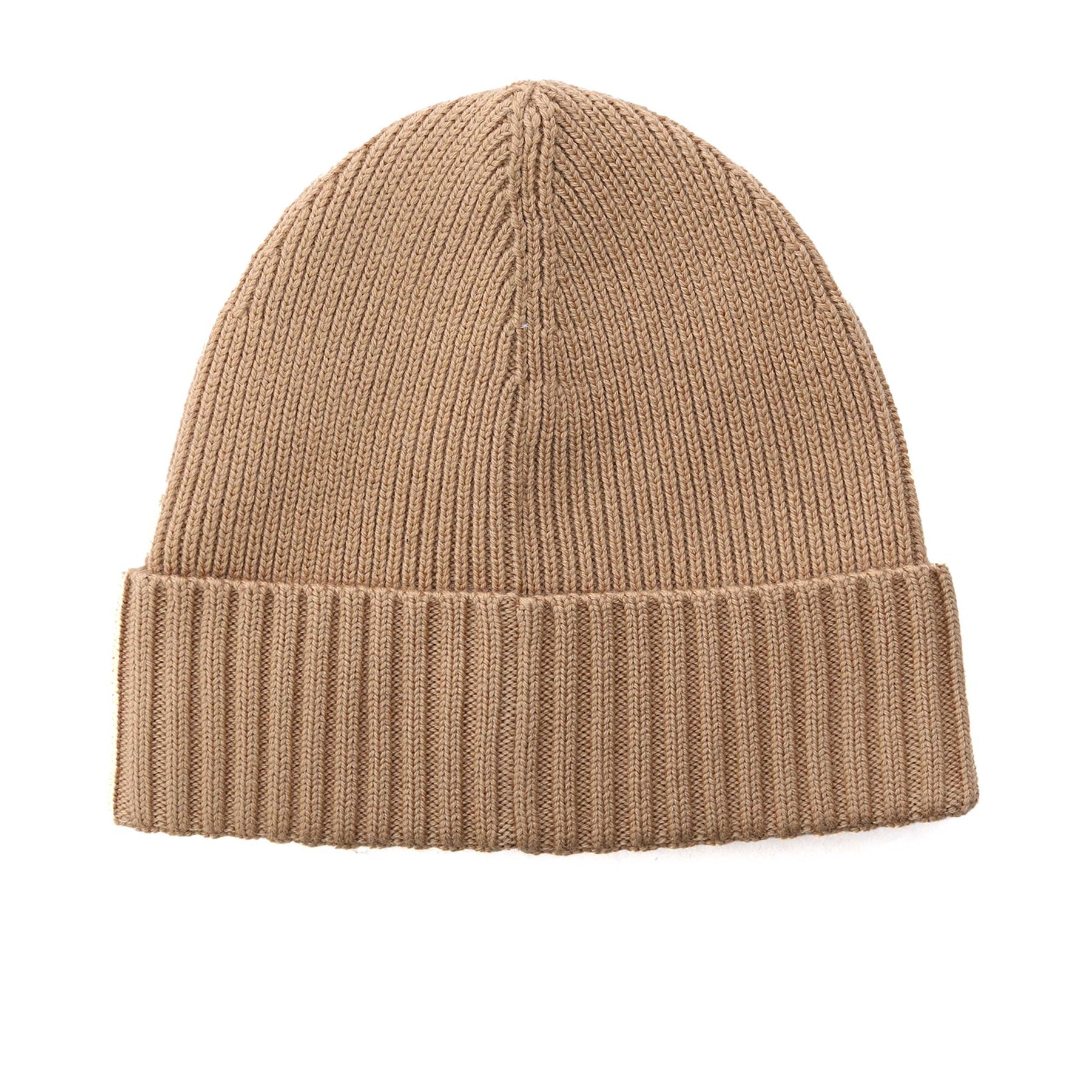 BOSS Fati Beanie Hat in Medium Beige. This BOSS beanie hat arrives in a knitted virgin wool with a classic ribbed design. The turnover features a leather BOSS logo tab. Ideal for those cold winter walks.
