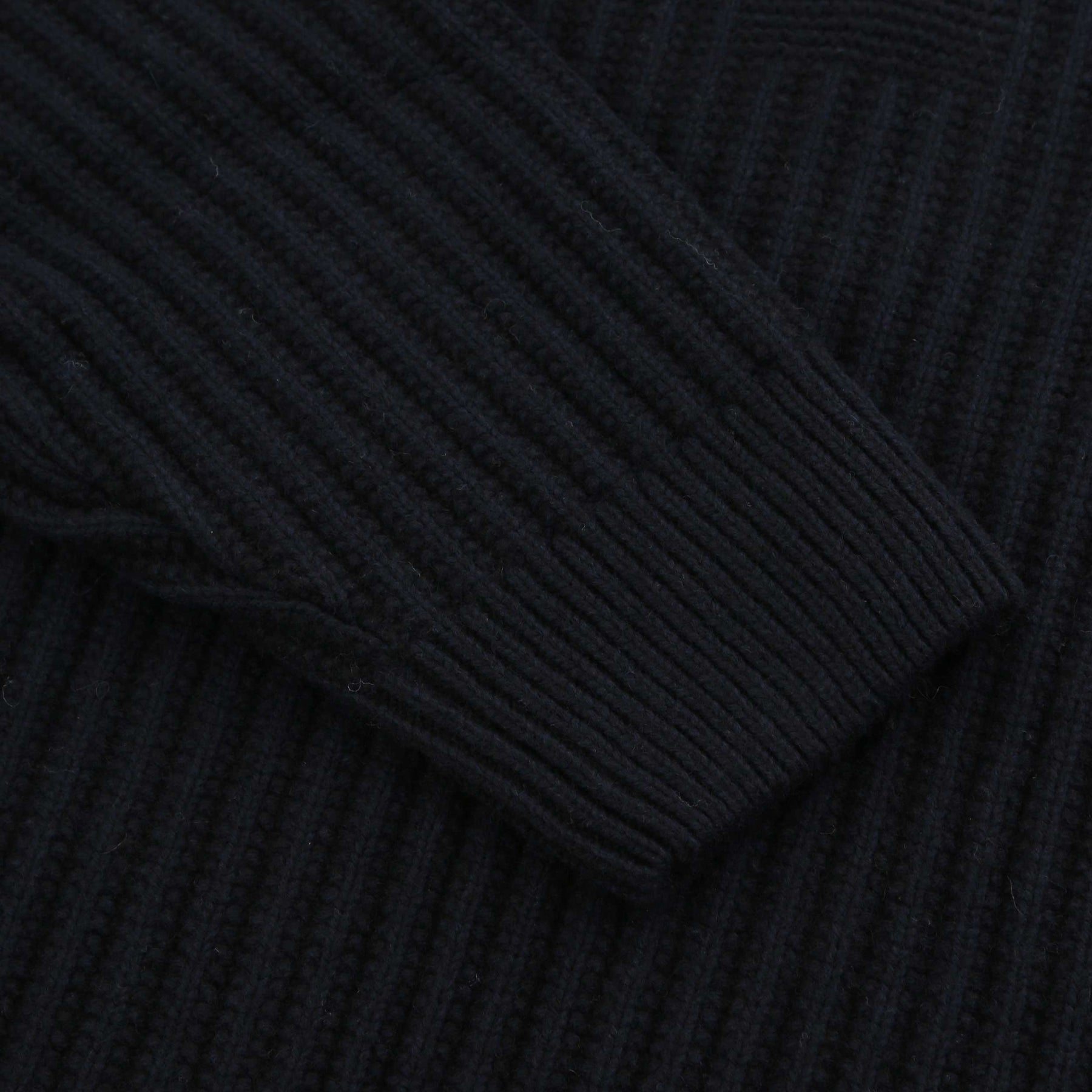 BOSS Kwinter Knitwear in Dark Blue. A classic piece of knitwear by BOSS. A knitted quarter-zip with a structured ribbed stand collar, ribbed cuffs, and a stretch ribbed hem for a secure, comfortable fit. Finished with a subtle Boss branded pinch tag at the lower side seam, it’s a modern everyday layer with just enough edge.