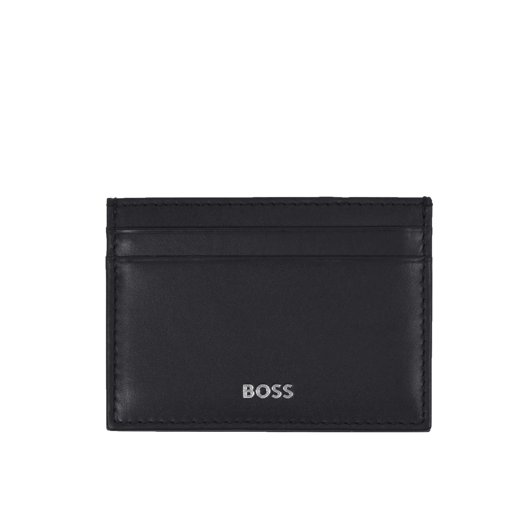 BOSS Randy Cardholder in Black. A BOSS wallet in a smooth leather. 4 card holder slots on this BOSS design wallet. This Boss wallet is finished with a Embossed contrasting BOSS logo badge to the front. Dimensions (L/H/W): approx. 10.5 x 9.5 x 1.5 cm. An essential day to day item.