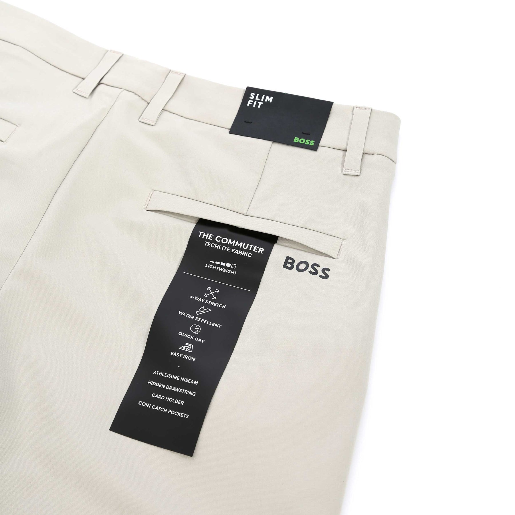 BOSS S Commuter 10.5 Inch Short in Light Beige. A regular fit short by BOSS. This 4 way stretch short arrives in a plain design with a regular rise. Featuring a partially elasticated waistband for comfort and a button fastening. 2 side slash pockets and 2 seat pockets. Hidden drawstring to the waistband. Can be teamed up with a t-shirt or shirt for those casual or smart occasions.