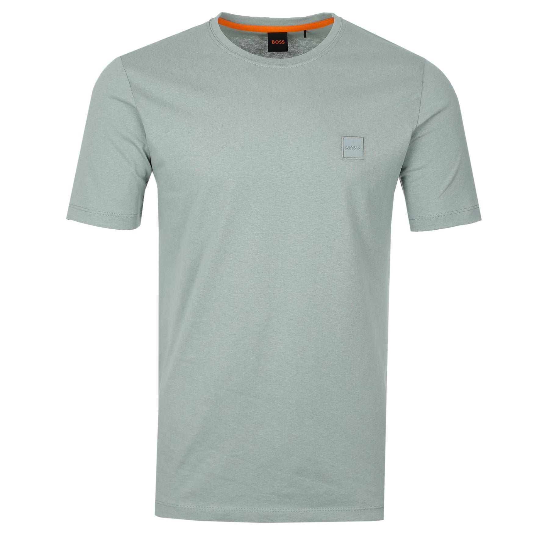 BOSS Tales T-Shirt in Sage Green. A classic T-Shirt by BOSS. This regular fit T-Shirt is easily worn and comfortable for everyday wear. It is detailed with a small tonal BOSS logo patch on the chest.