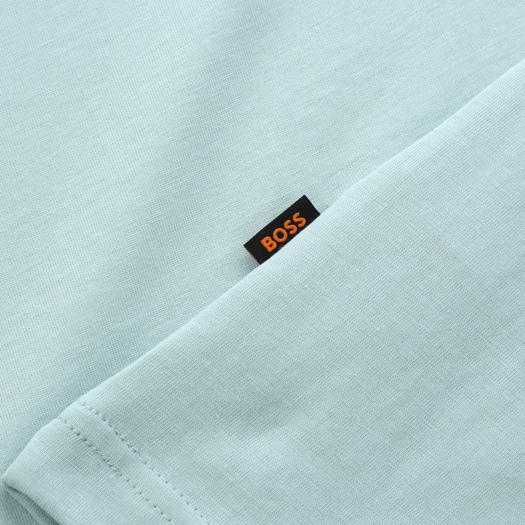 BOSS Te Board T Shirt in Turquoise Aqua. This BOSS T-shirt is crafted from soft cotton jersey for breathable comfort and easy all-day wear. Cut to a regular fit, it delivers a clean, relaxed silhouette that works perfectly for casual styling.