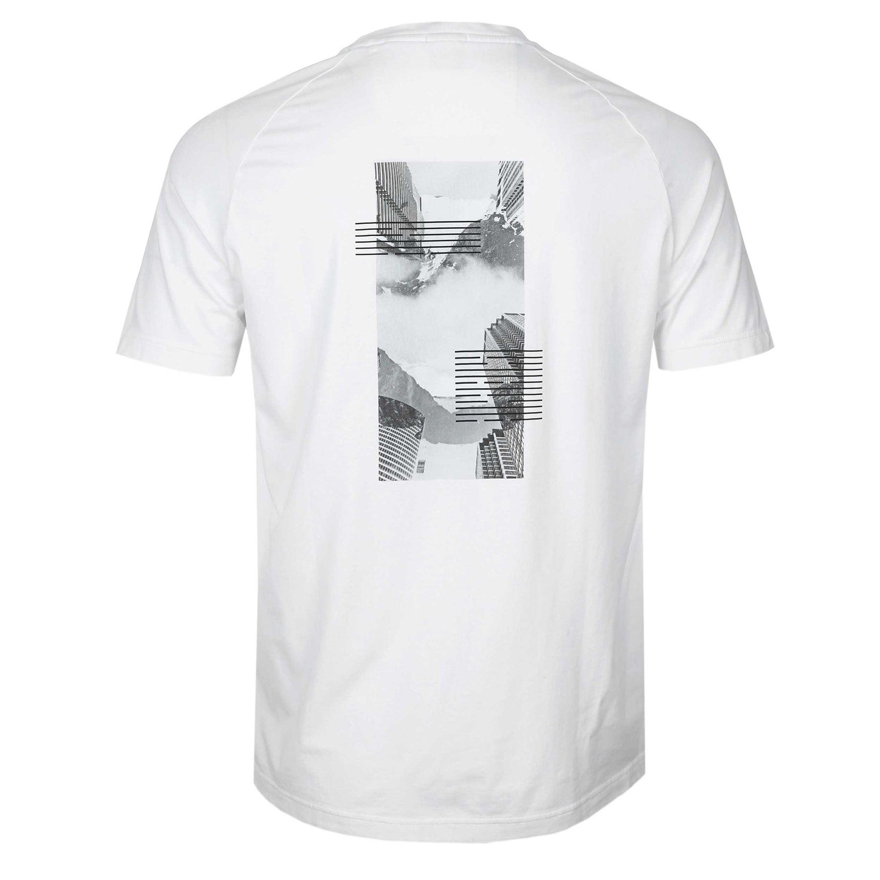 BOSS TTee Stripe Zone T Shirt in White. Regular fit t shirt by BOSS. Crafted from a soft, stretchy cotton blend, this relaxed-fit BOSS T-shirt delivers a fresh, modern look with bold photo prints and subtle reflective accents. Finished with a clean logo detail, it’s made using at least 60% cotton sourced from regenerative agriculture and contains over 60% better raw materials—bringing effortless style with a more responsible approach.