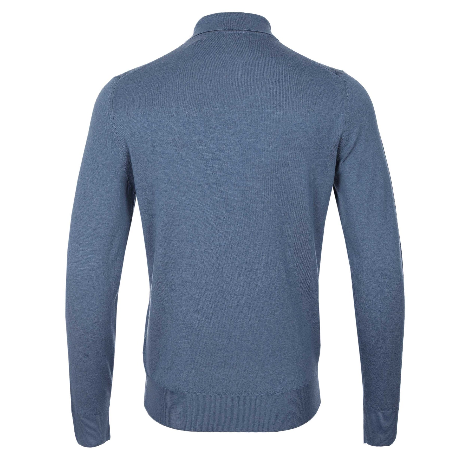 Canali 3 Button Knitted Polo in Blue. Long sleeve knitted polo shirt by Canali in a regular fit. Plain design polo shirt with a 3 button fastening placket. Ribbed collar, cuff and hem. Perfect to be worn on its own or to layer up.