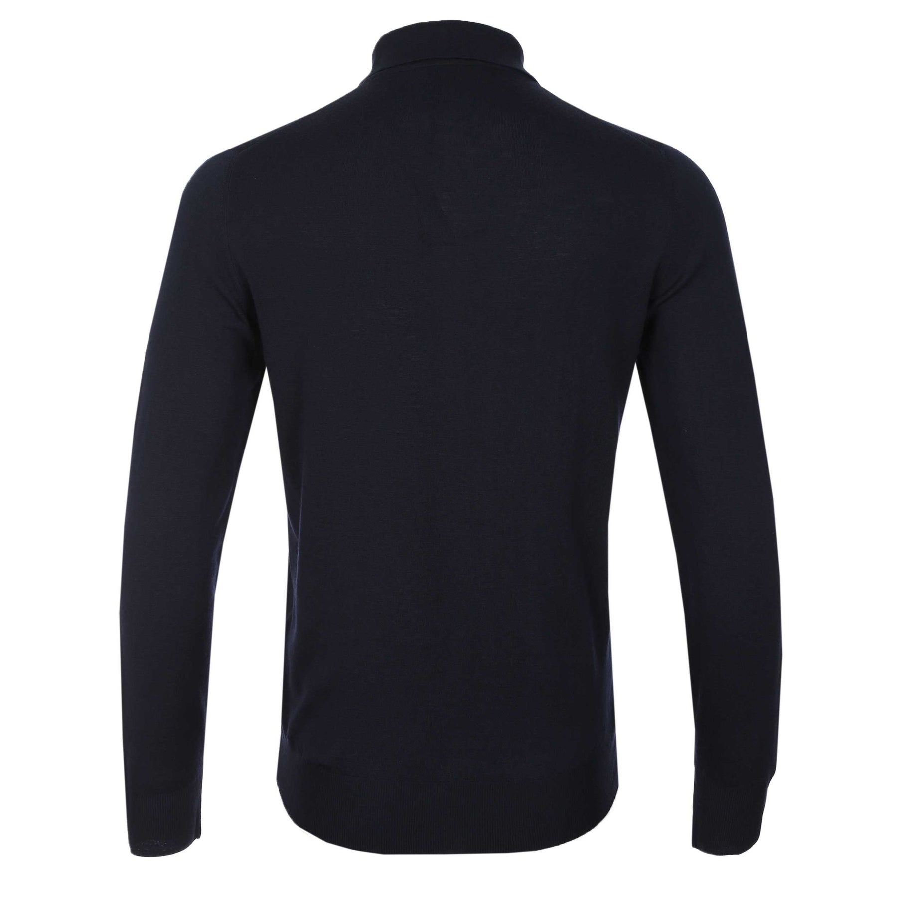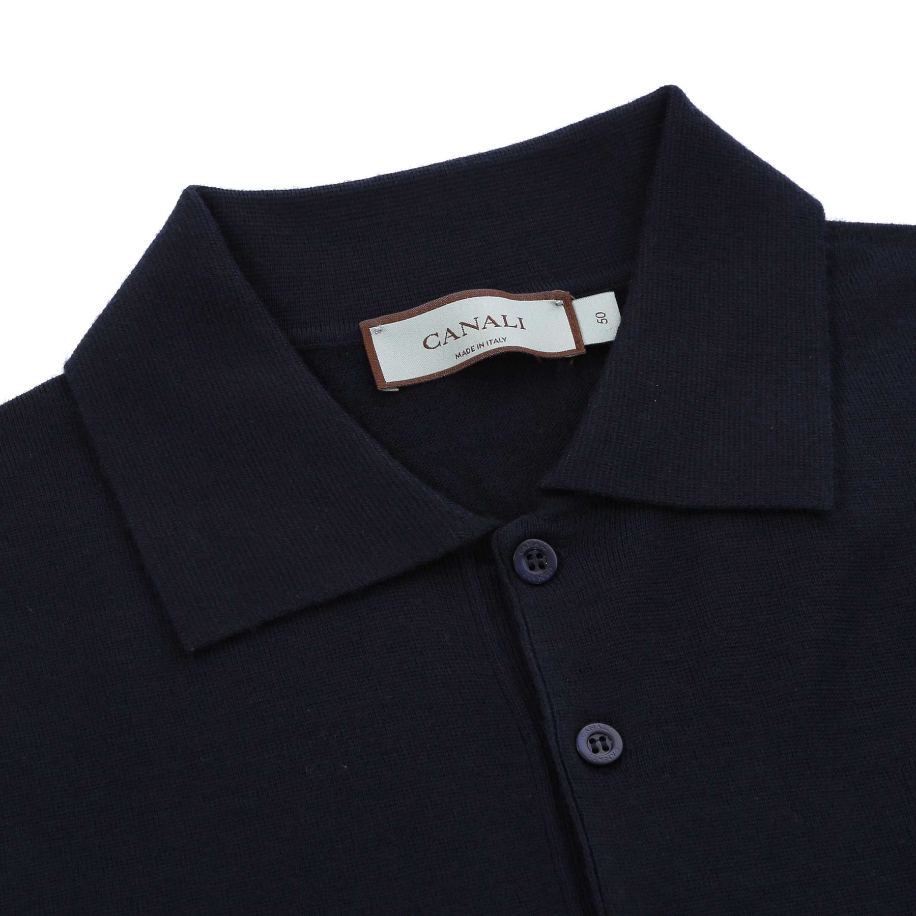 Canali 3 Button Knitted Polo in Navy. Long sleeve knitted polo shirt by Canali in a regular fit. Plain design polo shirt with a 3 button fastening placket. Ribbed collar, cuff and hem. Perfect to be worn on its own or to layer up.