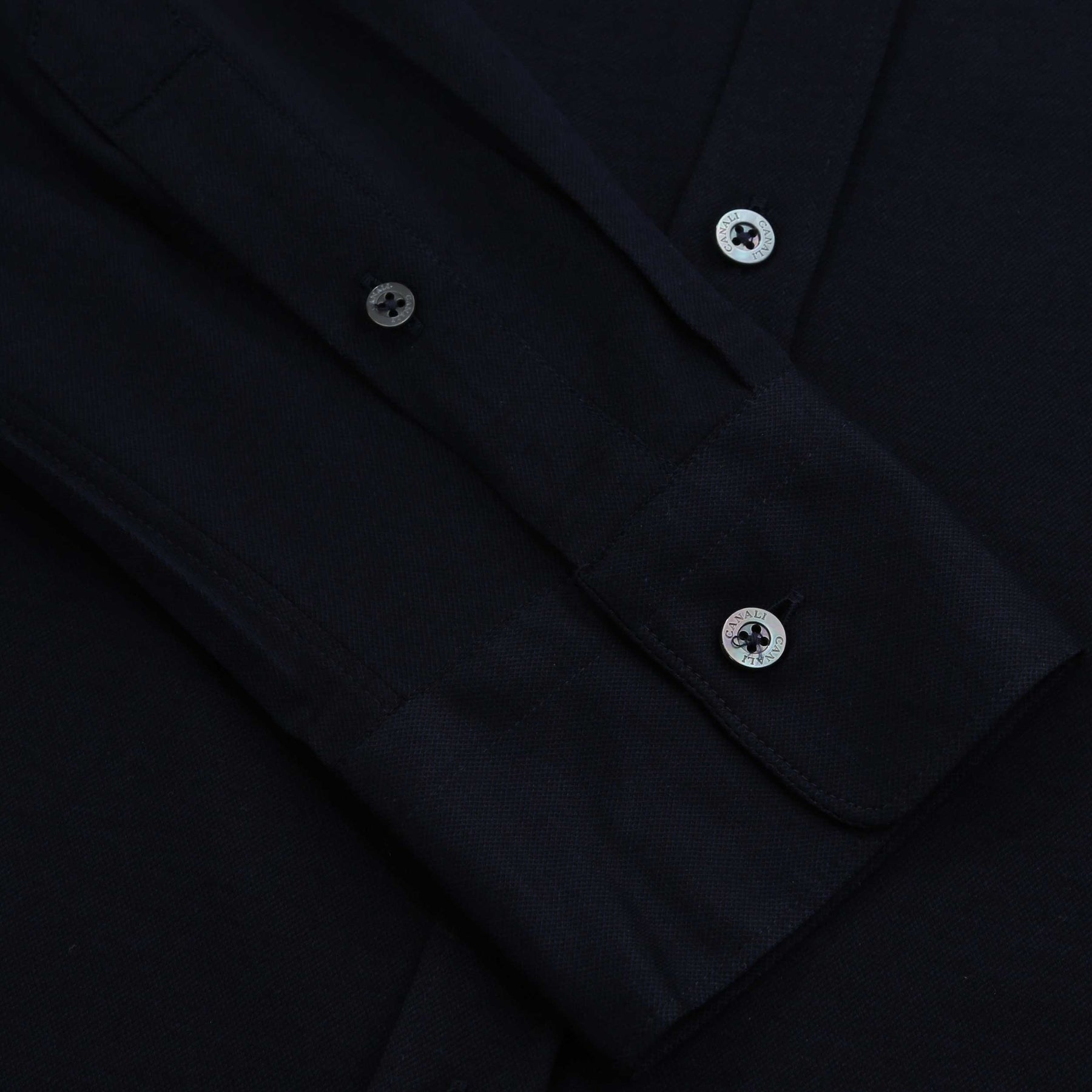 Canali Basic Stretch Shirt in Navy. Long sleeve shirt by Canali cut to a slim fit. This classic shirt arrives in a plain design with a full button fastening placket. Stretch properties to the shirt. Soft pointed collar.