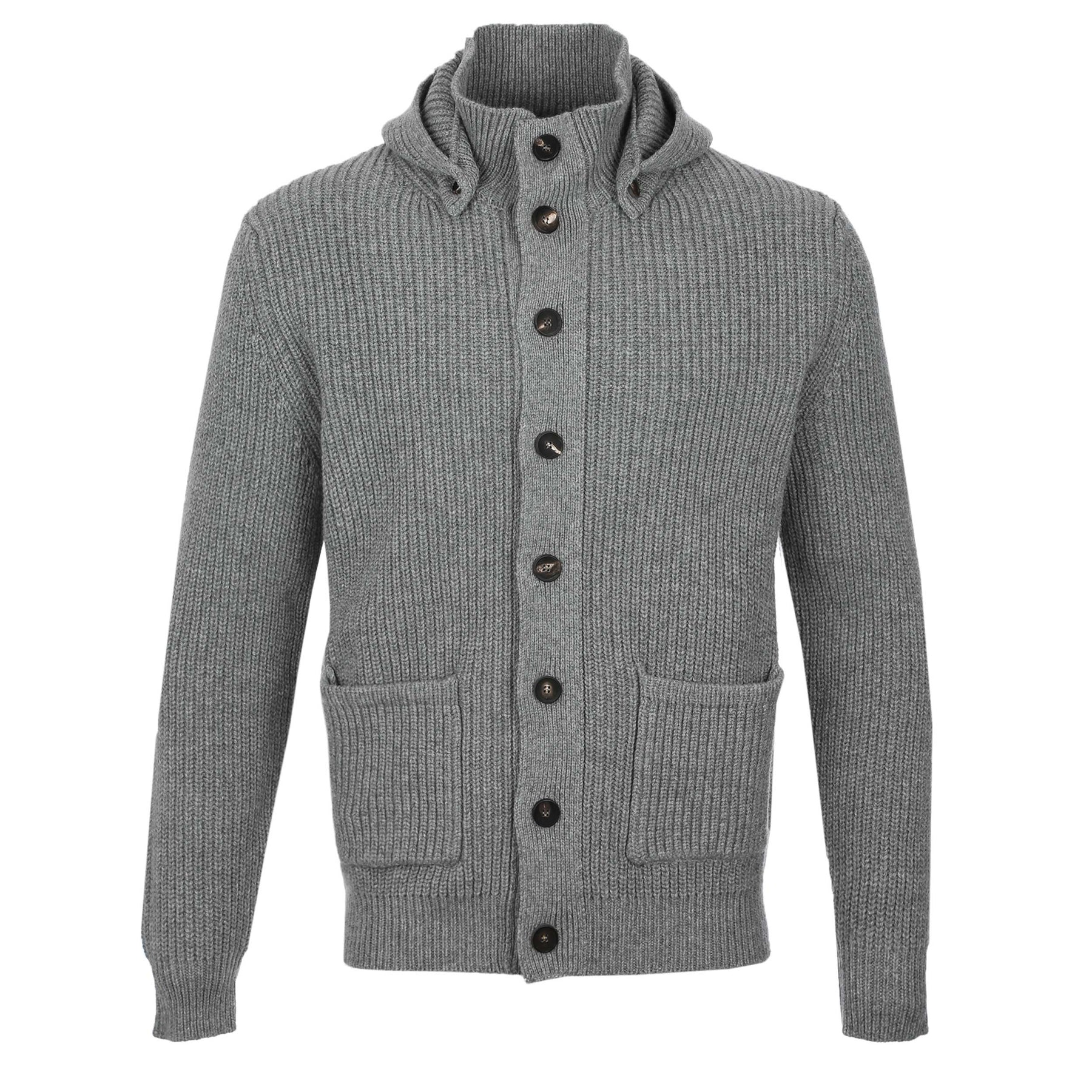 Filippo De Laurentiis Chunky Button Thru Hooded Cardigan in Grey