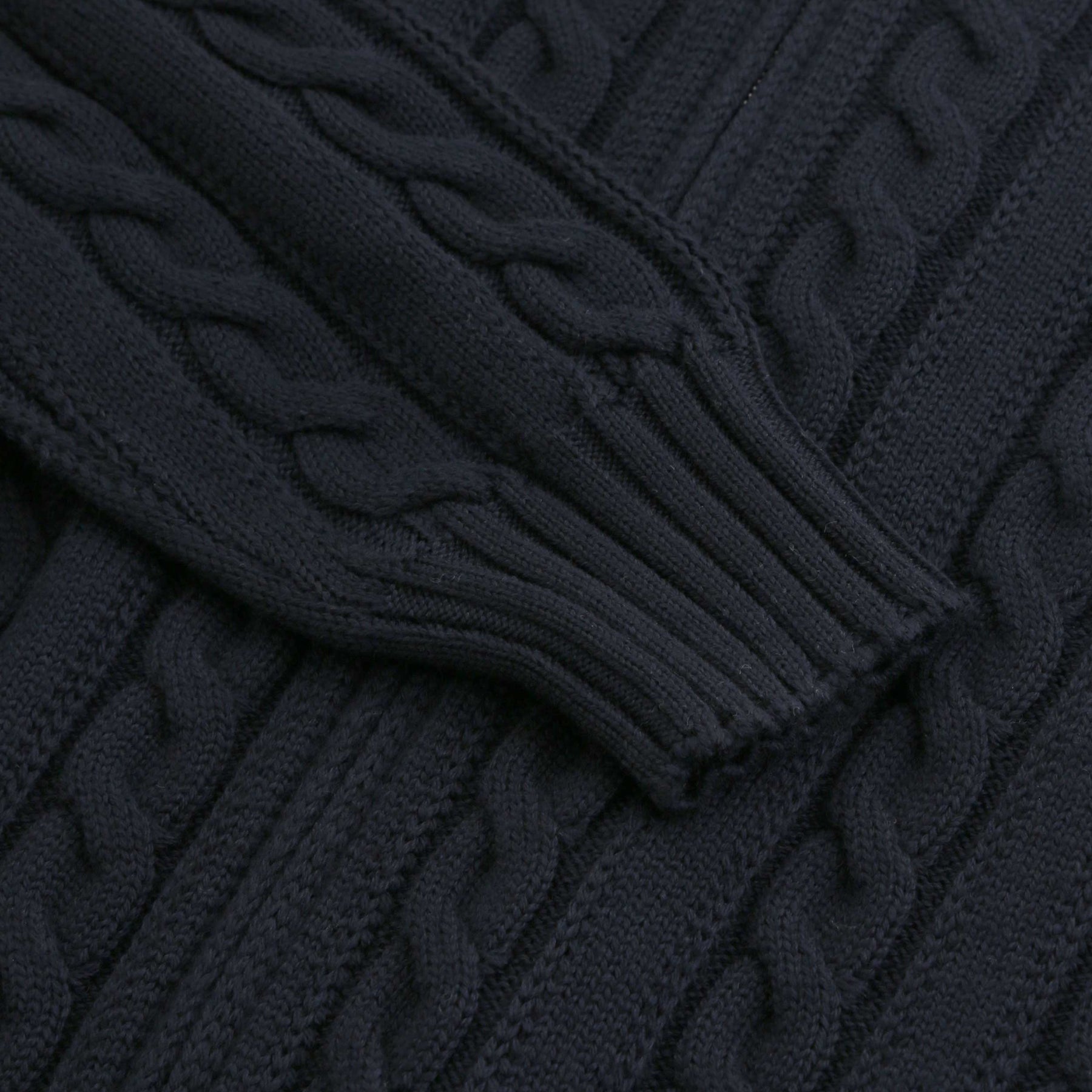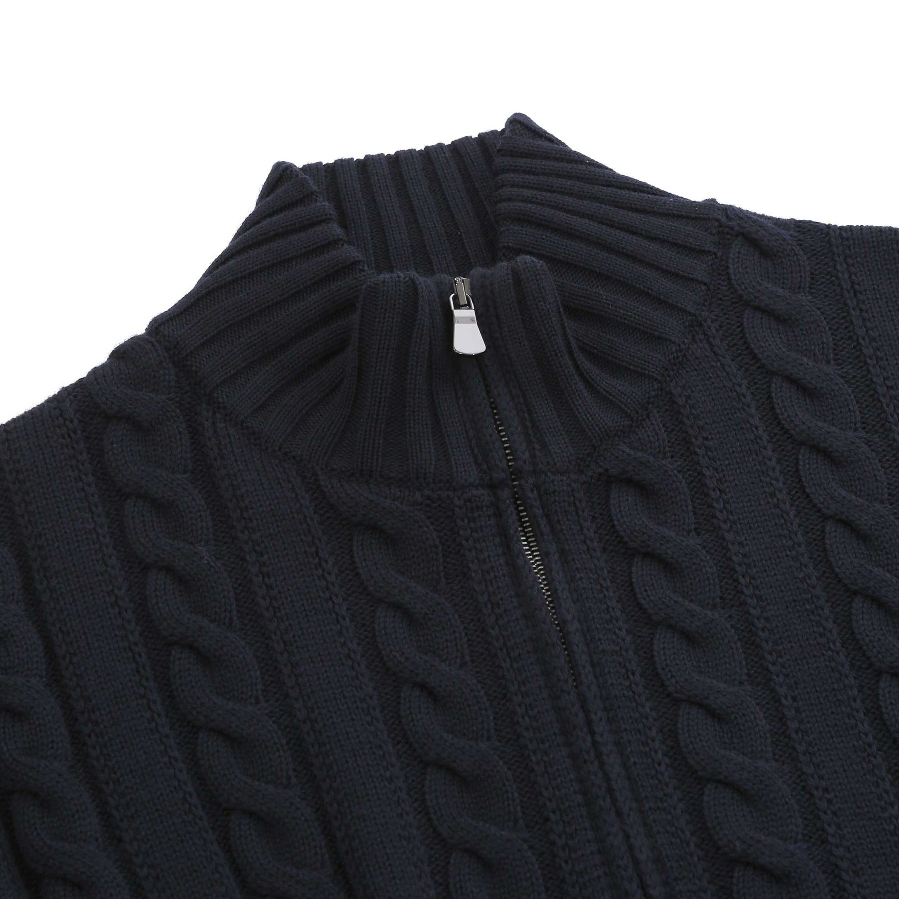 Filippo De Laurentiis Extrafine Merino Cable Knit Zip Knitwear in Navy