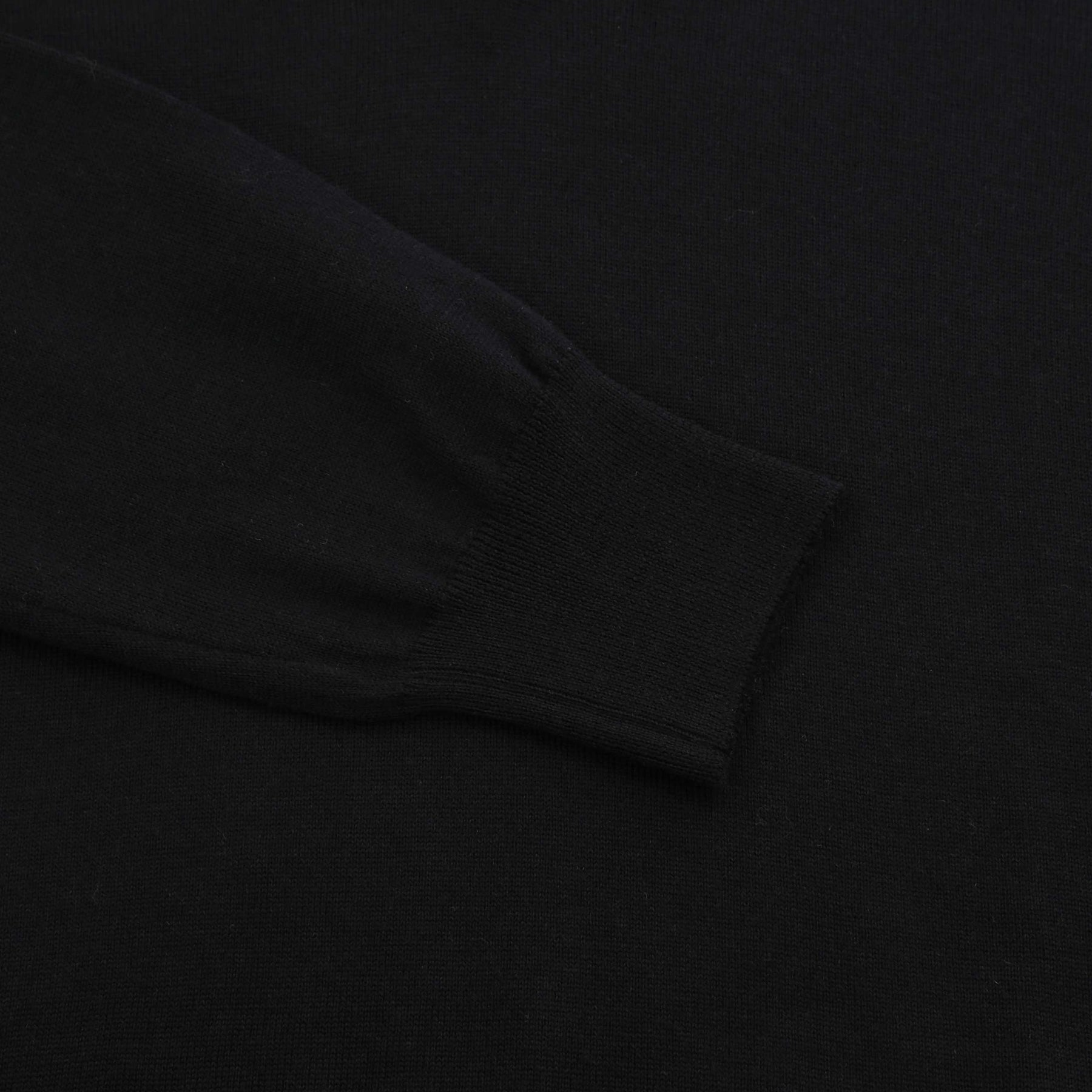 Gran Sasso Skipper Collar Knitwear in Black. This sweater is crafted from extra-fine technical merino wool — fully easy-care, machine-washable and tumble-dryable — making it one of the most practical premium knits you can own. Naturally breathable, crease-resistant, cooling and moisture-wicking, it keeps you comfortable all day without losing its shape or softness. Warm yet lightweight, it pairs effortlessly with joggers for an elevated leisure look. Made in Italy, it’s a refined, low-maintenance essential built for everyday wear.