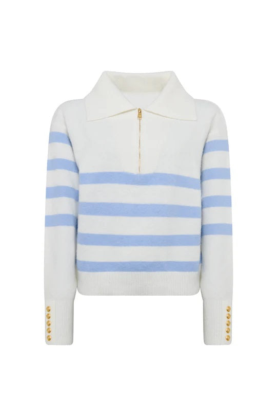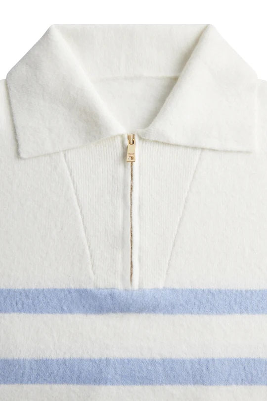 Holland Cooper Lydia Quarter Zip Knit in Natural Powder Blue