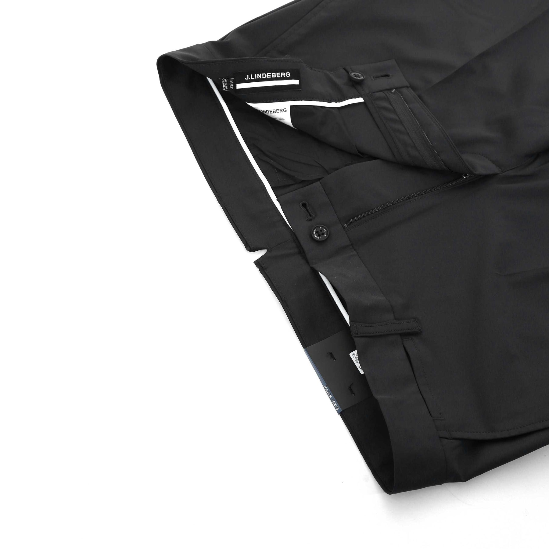 J.Lindeberg Ellott Trouser in Black. The Ellott Trouser delivers the perfect blend of style, comfort, and performance. Crafted from premium micro high stretch fabric, it offers exceptional flexibility and freedom of movement, ensuring you stay comfortable both on and off the course.Pair the Ellott Trouser with any J.Lindeberg polo shirt for a sleek, modern golf look that performs as well as it looks.