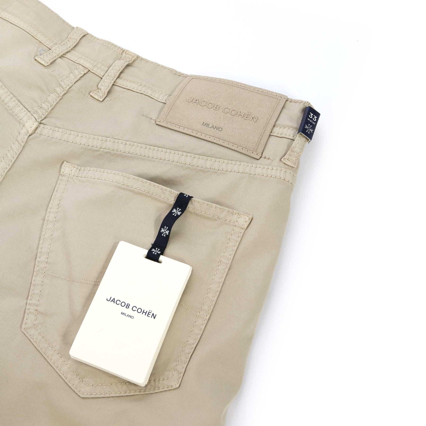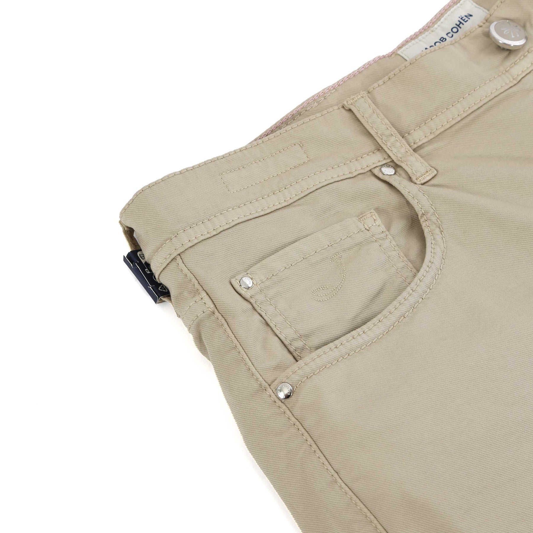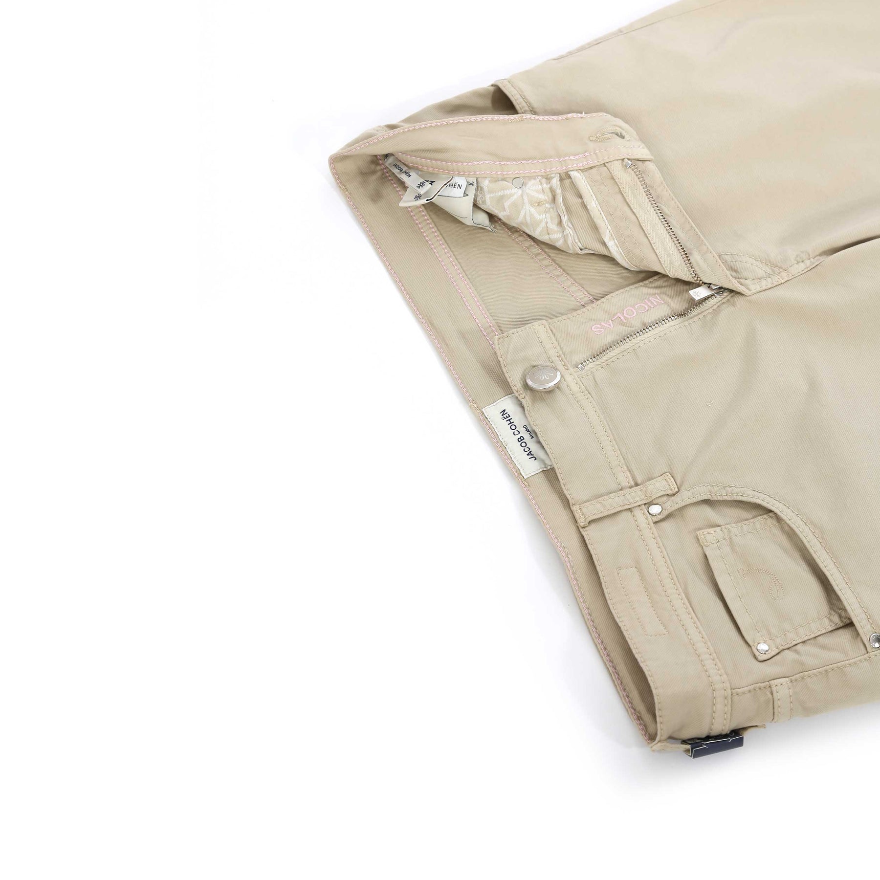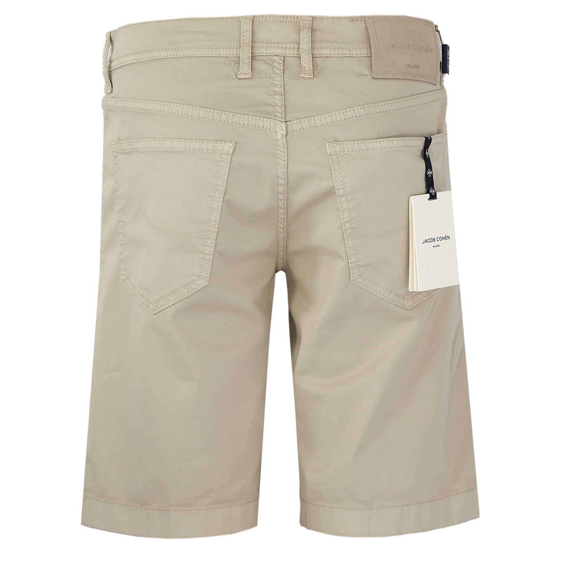 Jacob Cohen Nicholas Short in Beige. A high quality, cotton blend short by Jacob Cohen. They feature a 5 pocket jean style and a Jacob Cohen brand badge to the rear. Button and fly zip fastening. Tonal grained leather logo badge to the waistband.
