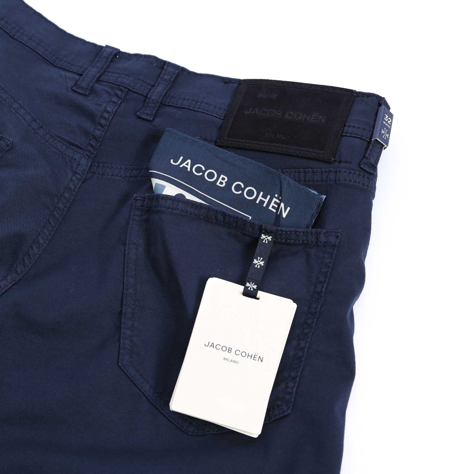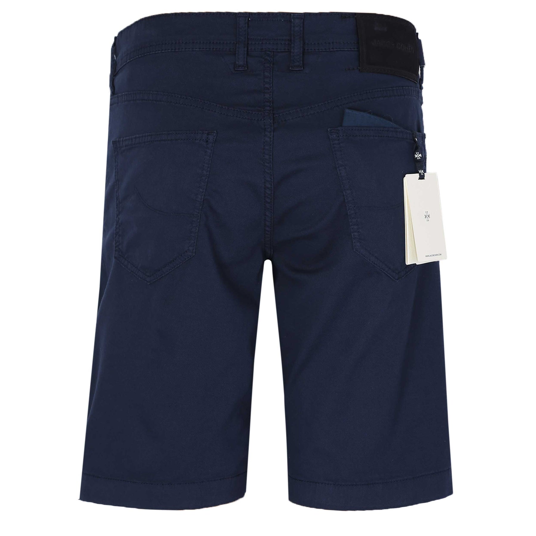 Jacob Cohen Nicholas Short in Royal Blue. A high quality, cotton blend short by Jacob Cohen. They feature a 5 pocket jean style and a Jacob Cohen brand badge to the rear. Button and fly zip fastening. Tonal grained leather logo badge to the waistband.