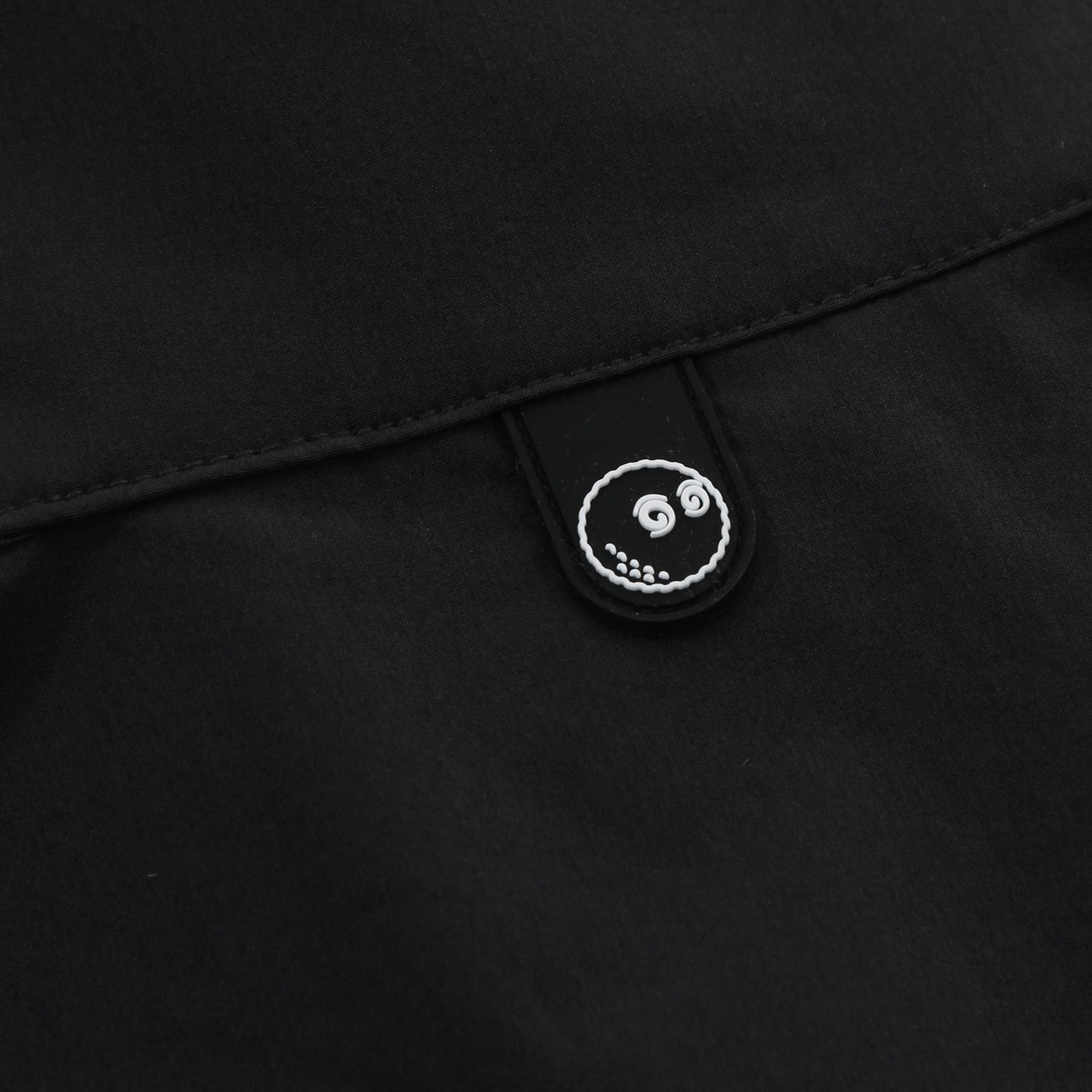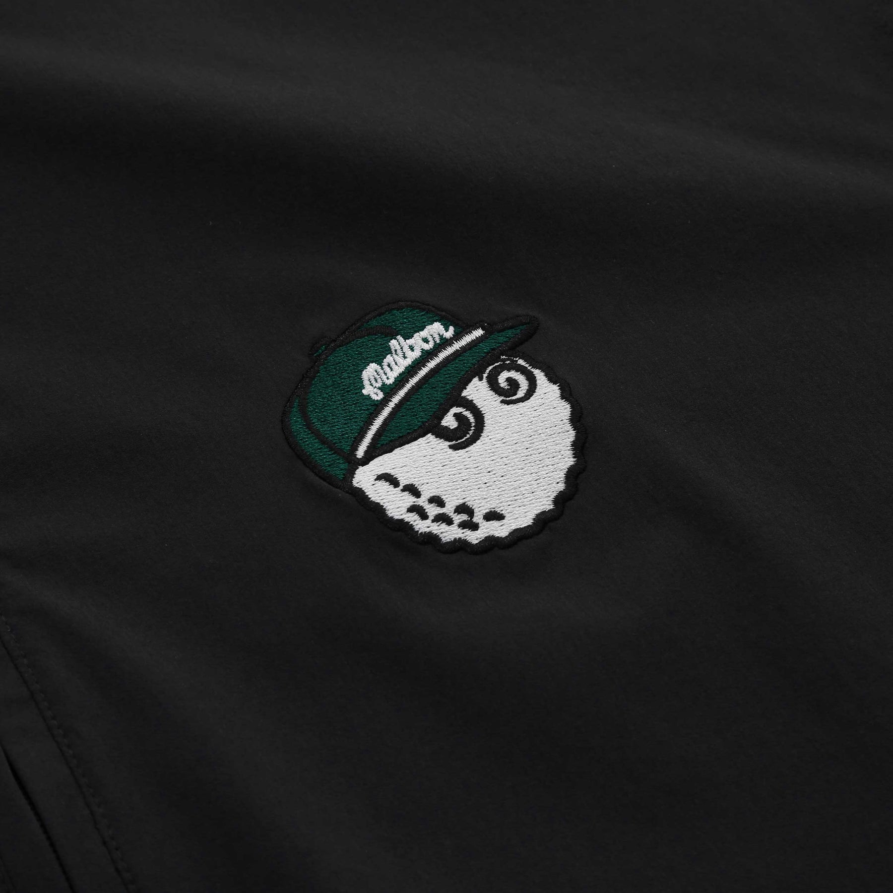 Malbon Pine Windshirt in Black. Pine Windshirt From Malbons Icons collection, the Pines Windshirt is crafted from lightweight, breathable fabric, it offers unrestricted movement with an adjustable drawstring waist and open back vent for enhanced airflow. Complete with signature Malbon branding, this versatile layer is a year-round essential both on and off the course.