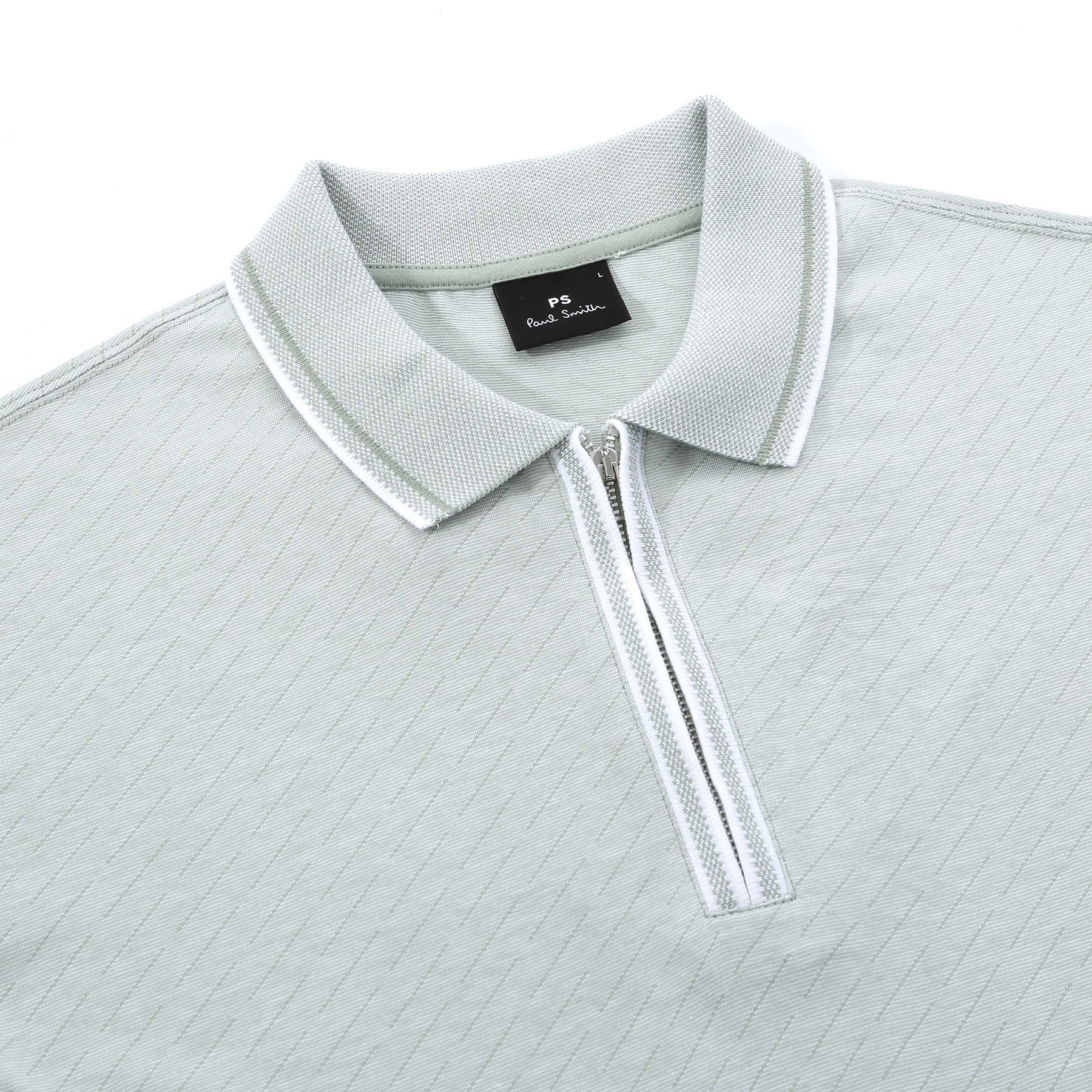 Paul Smith Diagonal Print Zip Polo Shirt in Green