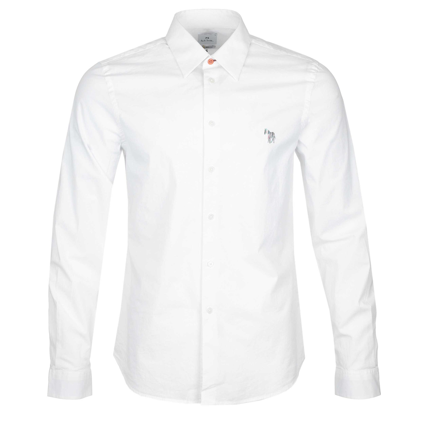 Paul Smith Tailored Fit Zeb Print Emb Shirt in White