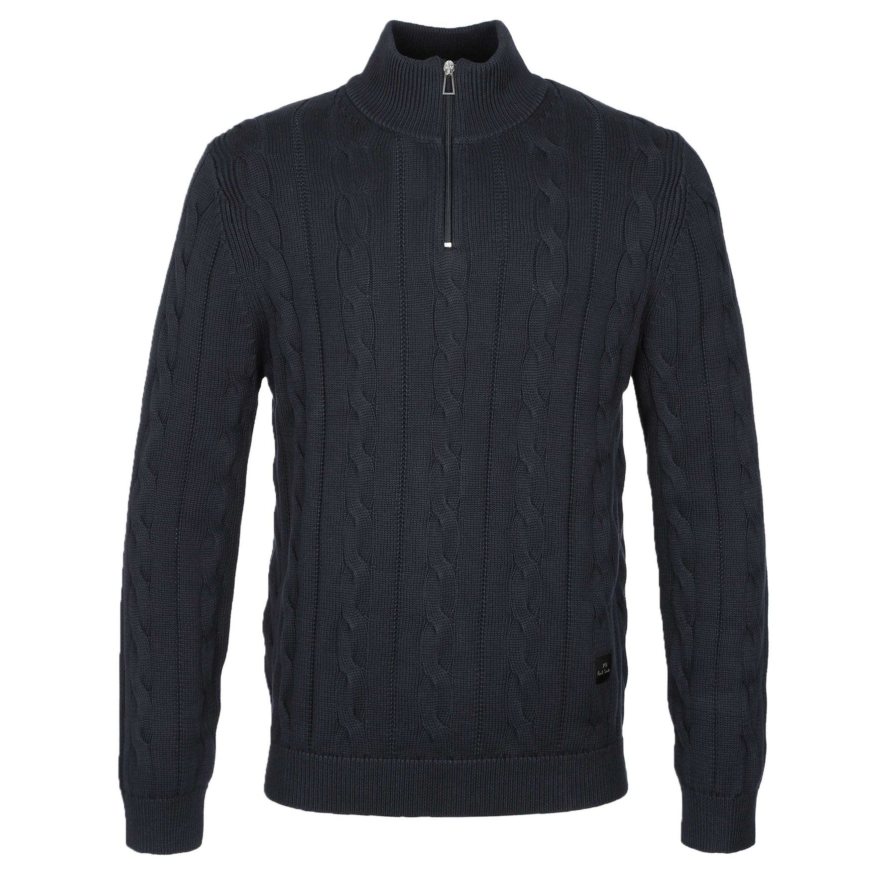 Discover the elegance and sophistication of the Zip Neck Sweater Knitwear in Navy. Crafted from 100% organic cotton, this cable knit style knitwear addition embodies both comfort and luxury, making it a perfect choice for the modern gentleman.