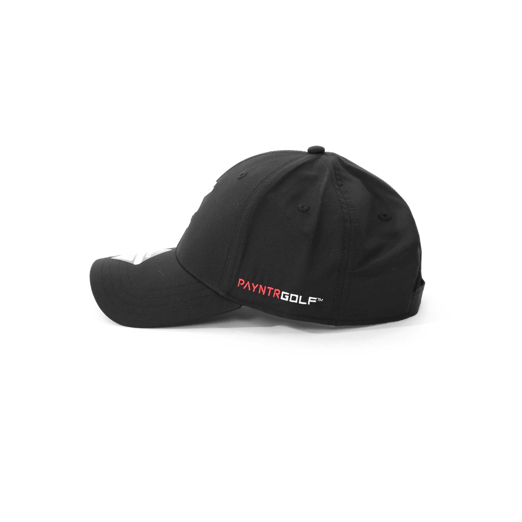 PAYNTR Tech Fabric Cap in Black. The tech fabric cap is a smart, versatile essential designed for everyday wear, training and golf. Built with a breathable construction and laser-cut ventilation panels, it promotes airflow and all-day comfort in warm conditions. This lightweight cap has tonal stitch ventilation holes. Adjustable Velcro fastening strap. PAYNTR embroidered logos to the cap. UPF50 protection.