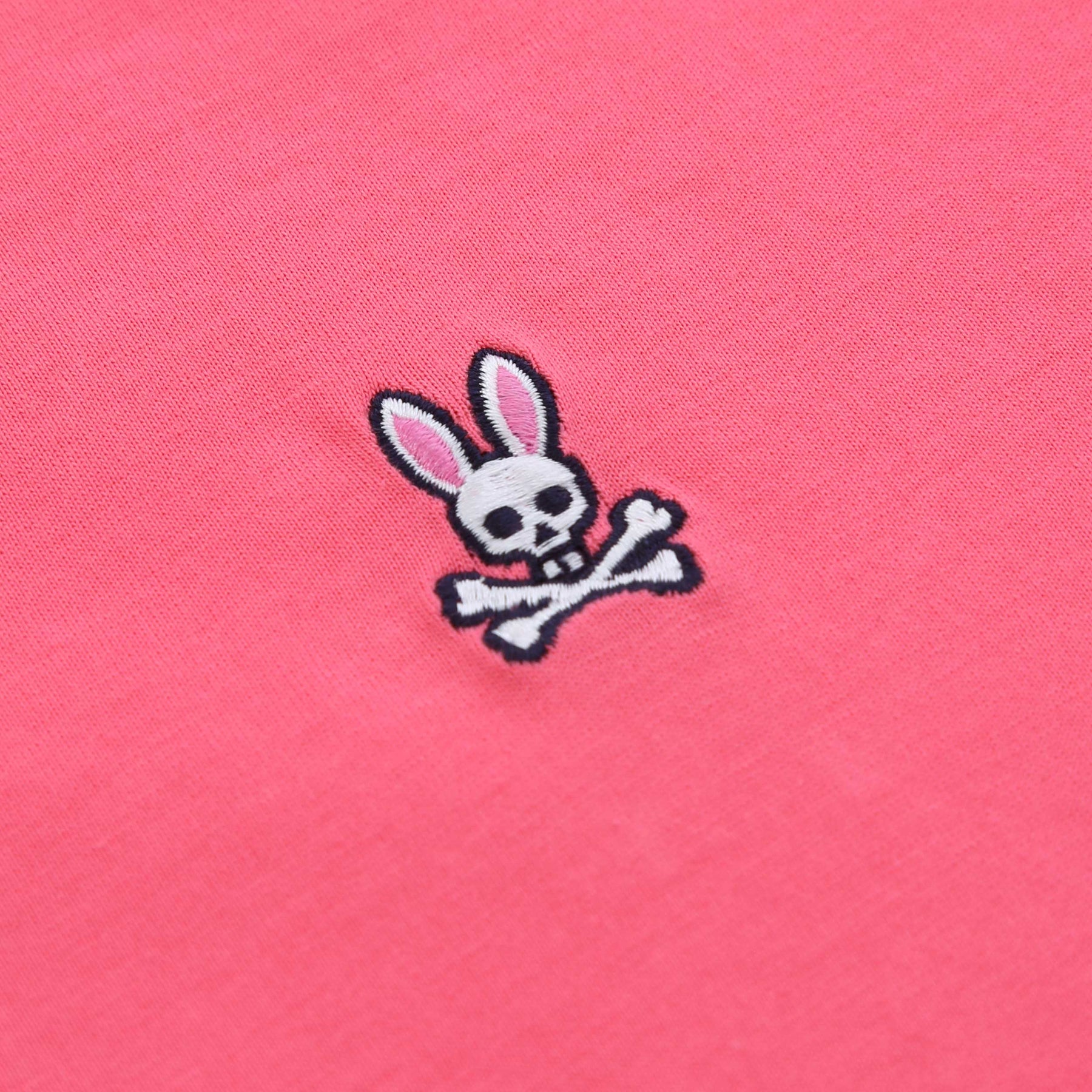 Psycho Bunny Classic T-Shirt in Camellia Rose Pink. Classic T-Shirt by Psycho Bunny. Plain Design with a crew neck and short sleeves. Finished off with a signature logo on the left breast.