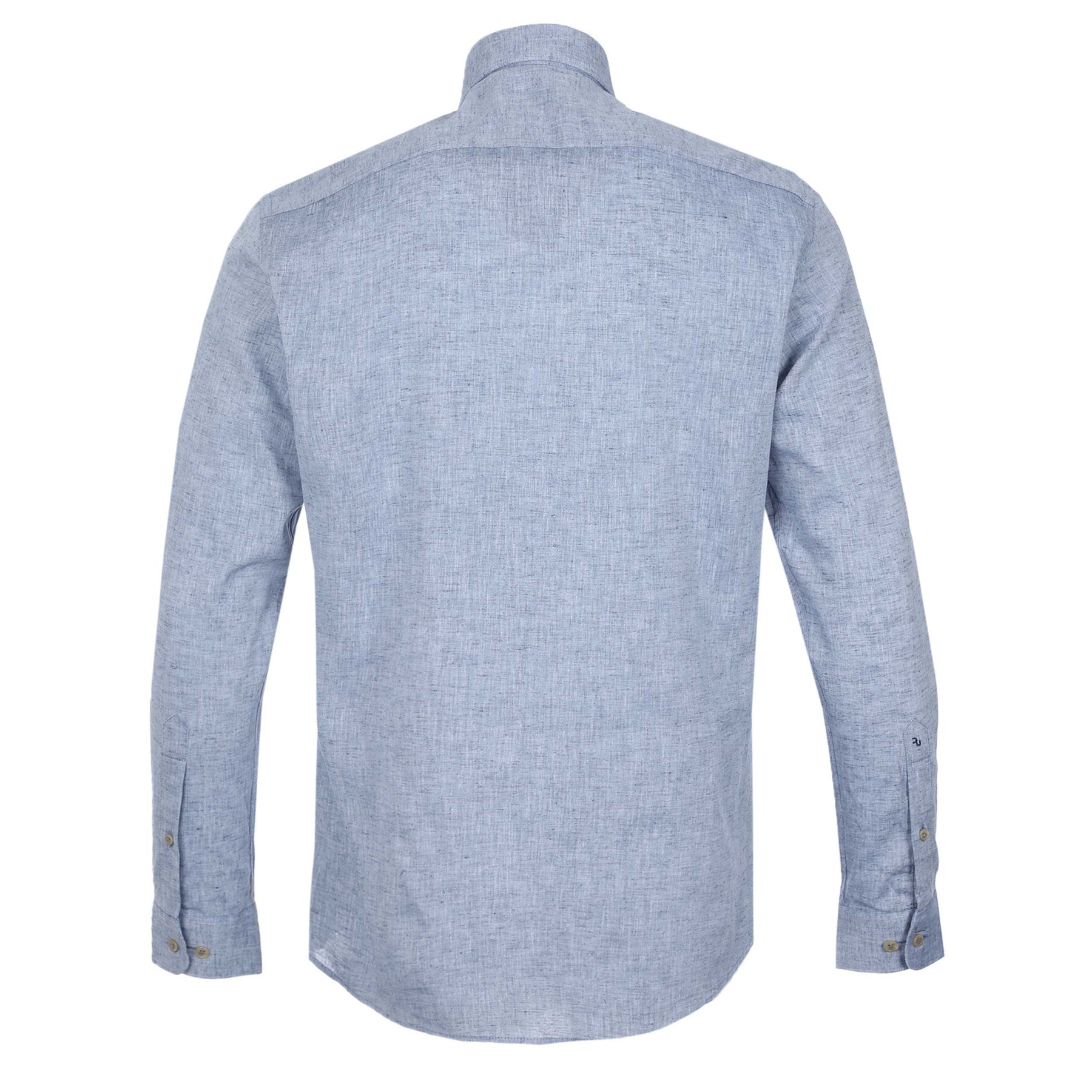 Remus Uomo Frank Linen Shirt in Washed Blue. Long sleeve shirt by Remus Uomo cut to a tapered fit. Cutaway button down collar. Mottled design shirt constructed from a cotton linen mix. Embroidered Remus Uomo logo to the sleeve. Finished with a Remus Uomo logo tab to the waist.