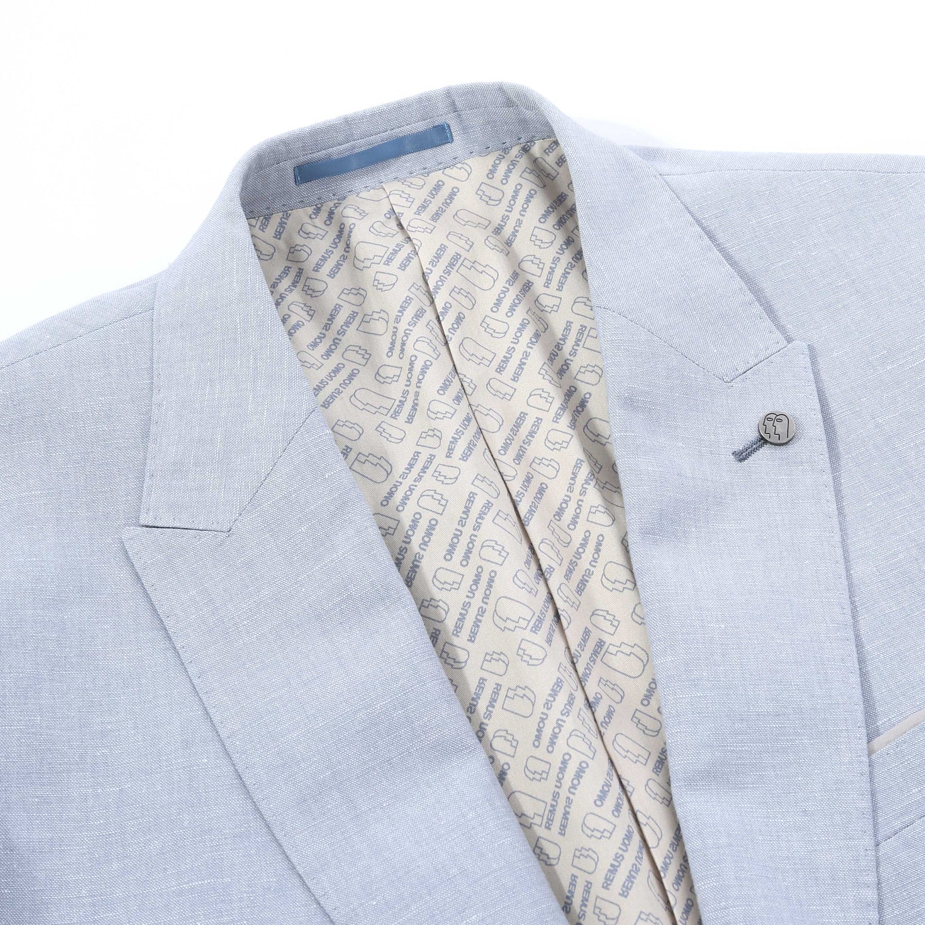 Remus Uomo Peppe Jacket in Sky Blue. Jacket by Remus Uomo. This tapered fit linen-blend jacket is tailored for a sharp, modern silhouette with warm-weather versatility. The linen blend construction offers natural breathability and lightweight structure, making it ideal for spring and summer occasions. Cut in a tapered fit, it creates a clean, streamlined profile without feeling restrictive. A peak lapel adds confident character, while the classic two-button fastening keeps the look timeless and versatile. Finished with straight flap side pockets for a traditional tailored detail. A contemporary linen-blend blazer designed for weddings, race days, summer events and elevated everyday tailoring.