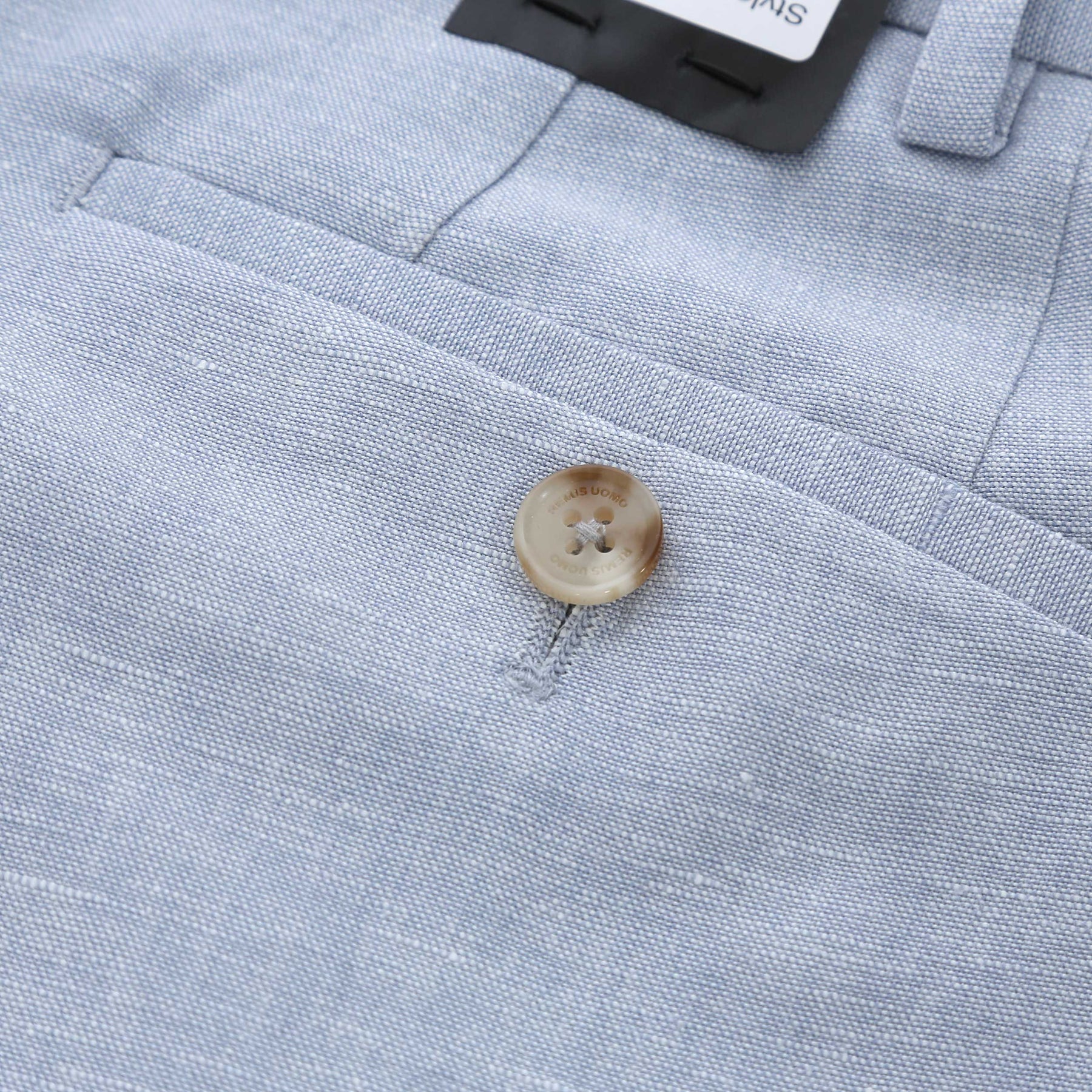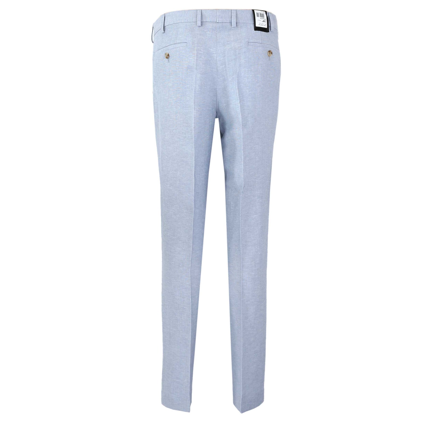 Remus Uomo Peppe Trouser in Sky Blue. Crafted by Remus Uomo, these linen mix trousers feature a zip and hook fastening at the waistband for a secure and tailored fit. With two stylish slash pockets on the sides and button fastening pockets at the back, you have all the space you need for your essentials without compromising on style.