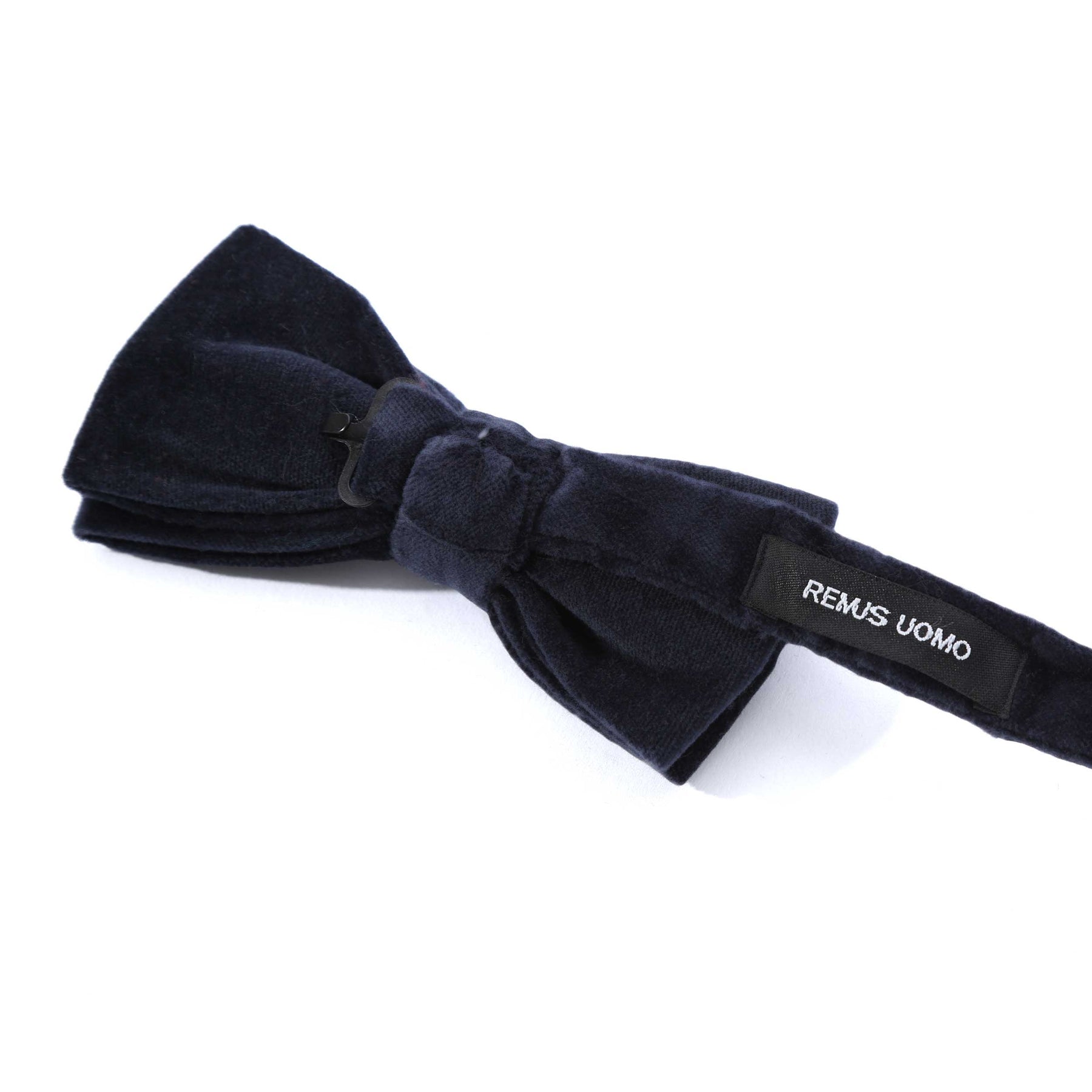 Remus Uomo Velvet Bow Tie in Navy. Classic bow tie style in a plain velvet. Pre-tied bow tie with an adjustable fastening strap. Clip fastening.
