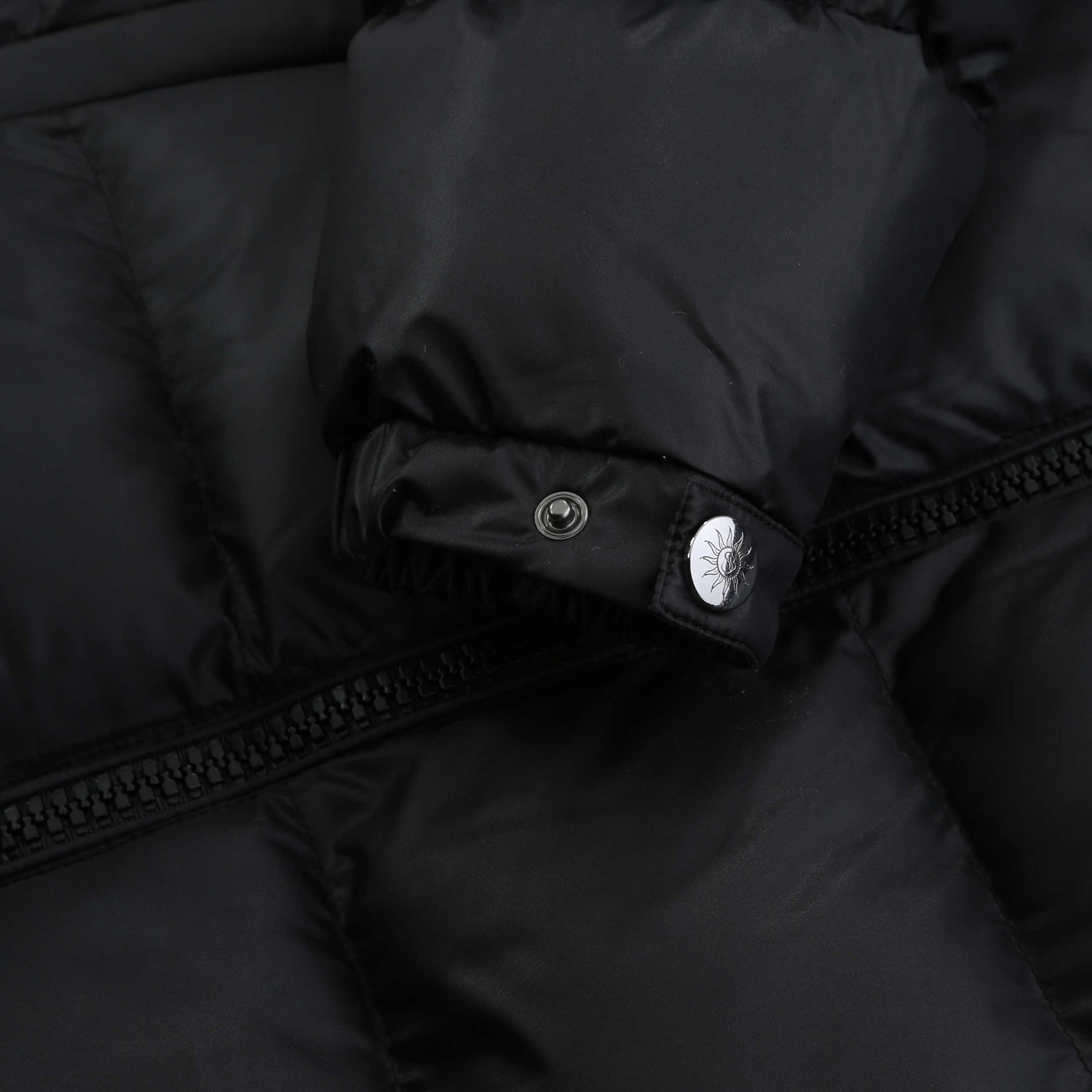 Discover the ultimate in warmth and style with the Sandbanks Aurora Puffer Ladies Jacket in Black. Crafted from premium lightweight Italian recycled polyester and insulated with eco-down made from recycled plastic bottles, this short women’s puffer delivers serious warmth with a clean, modern edge. The rich gold contrast lining gives it a luxury punch, while the Italian Lampo two-way zip, fleece-lined side pockets and removable hood keep it functional in any weather. Finished with an elasticated hem, adjustable cuffs, gunmetal hardware, and signature Sandbanks embroidery on the placket and sleeve badge, it’s a high-end, eco-focused jacket that actually looks the part.