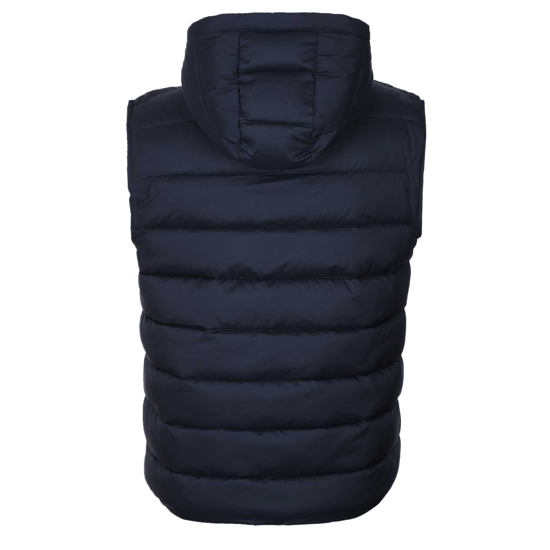 Sandbanks Frontier Micro Puffer Gilet in Navy. The Sandbanks Frontier Hooded Puffer Gilet in Navy is a lightweight, sustainably crafted layer made almost entirely from recycled plastic bottles. Designed for warmth without the bulk, it features a soft micro-polar fleece lined hood with adjustable cords, a premium 2-way YKK Vislon front zip and fleece-lined YKK coil side pockets for everyday comfort. Finished with the signature Sandbanks embroidered chest badge, this gilet delivers clean, modern style. Perfect for layering through the colder months.