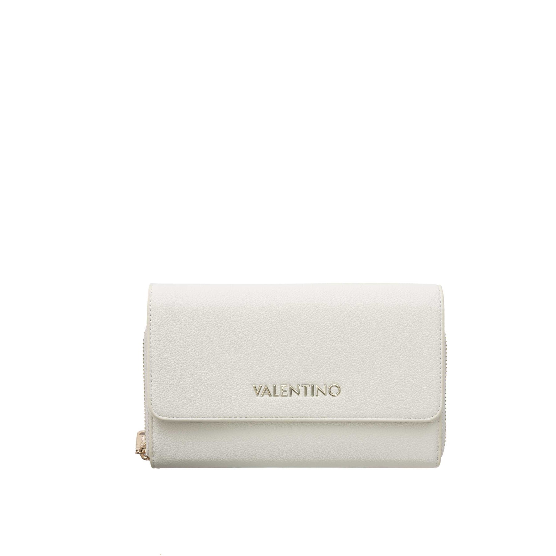Valentino Bags Doris RE Ladies Crossbody Purse in Ecru. Purse by Valentino by Mario Valentino. This ladies purse arrives in a plain PU leather design. It arrives with magnetic fastening and a signature Valentino branding badge to the front. Zip compartment with multiple card slots and pockets for notes and coins. Detachable shoulder chain.